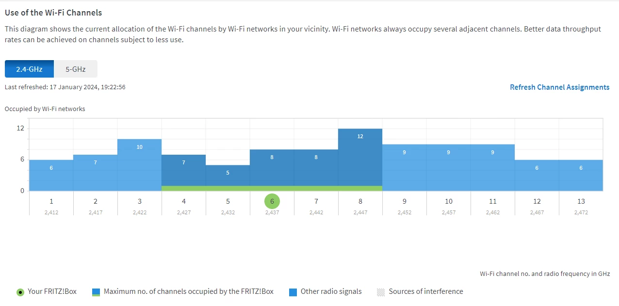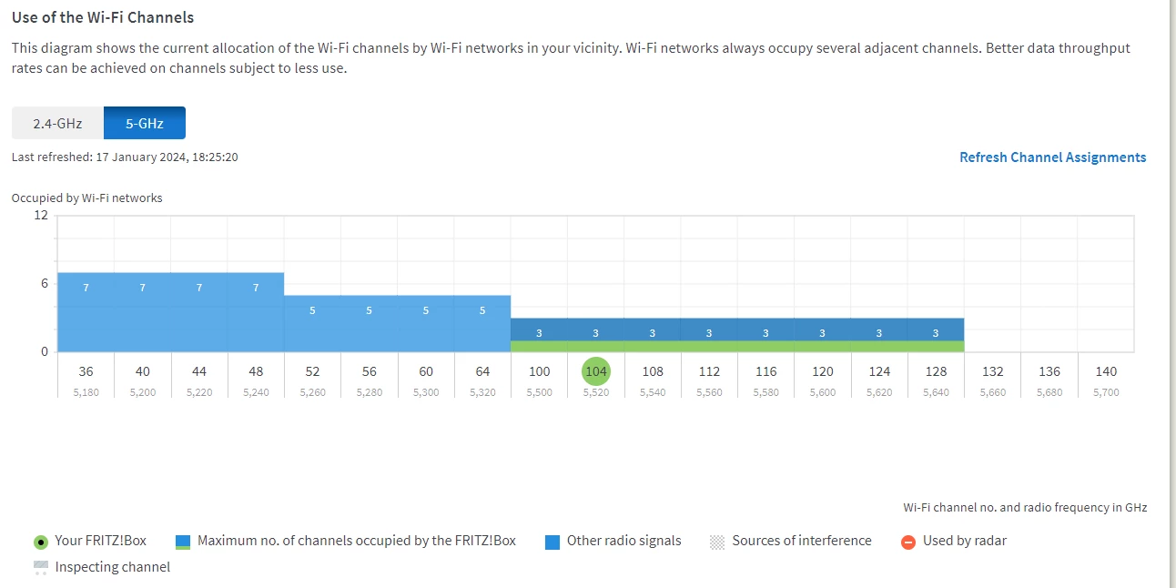 Bis auf die Radarmeldung (Abschaltung des 5 GHz Bands) kann ich aus deinen Screenshots nichts erkennen, was auf eine Beeinträchtigung hindeutet.