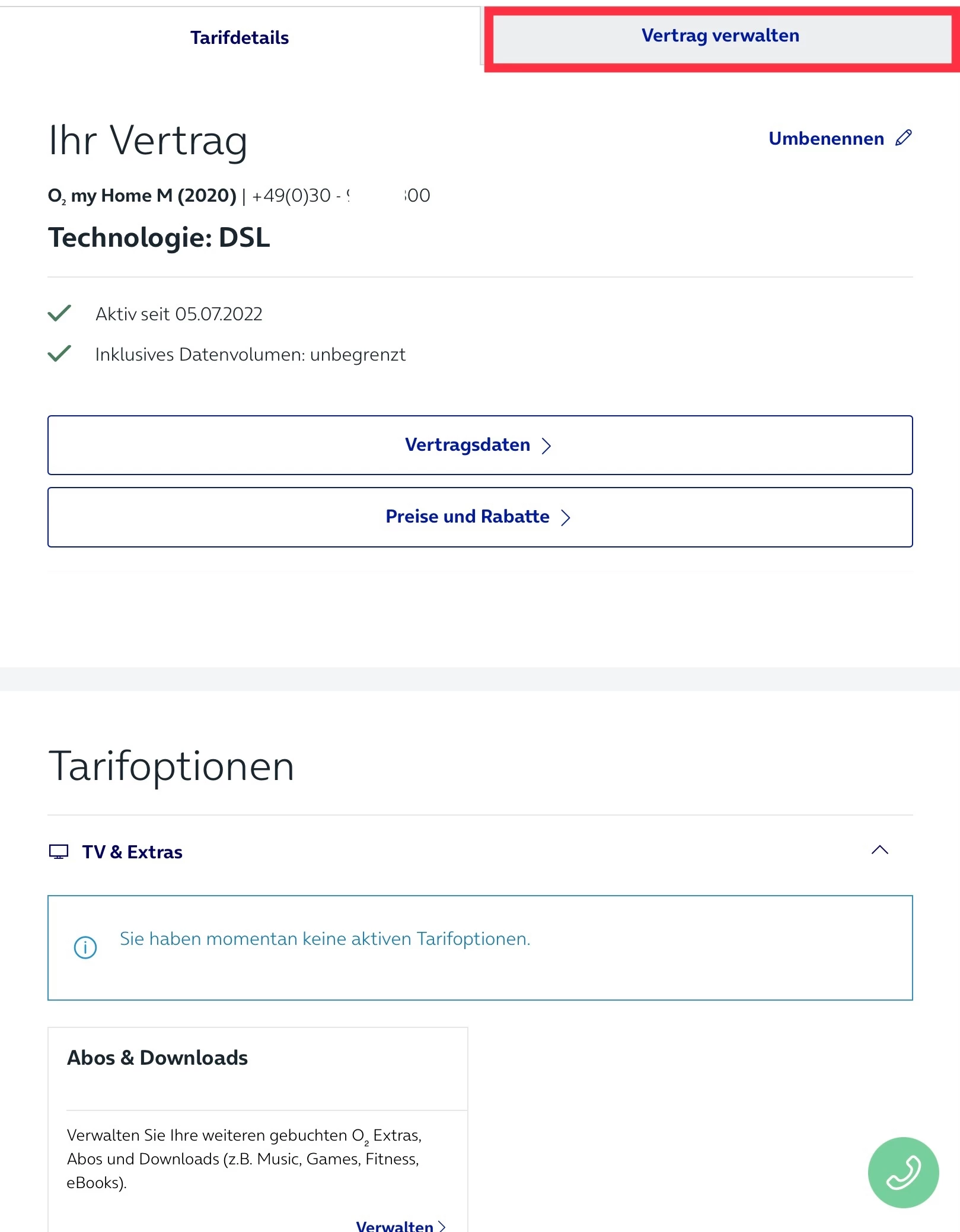 du musst oben rechts den Reiter Vertrag verwalten anklicken, dann kommst du zum richtigen Auswahlmenü.