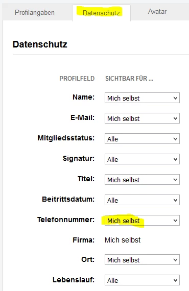 Sofern ihr unter "Datenschutz" nichts verändert habt, bzw dort "Mich selbst" steht kann auch niemand ausser uns Moderatoren oder ihr selbst die Rufnummer sehen.