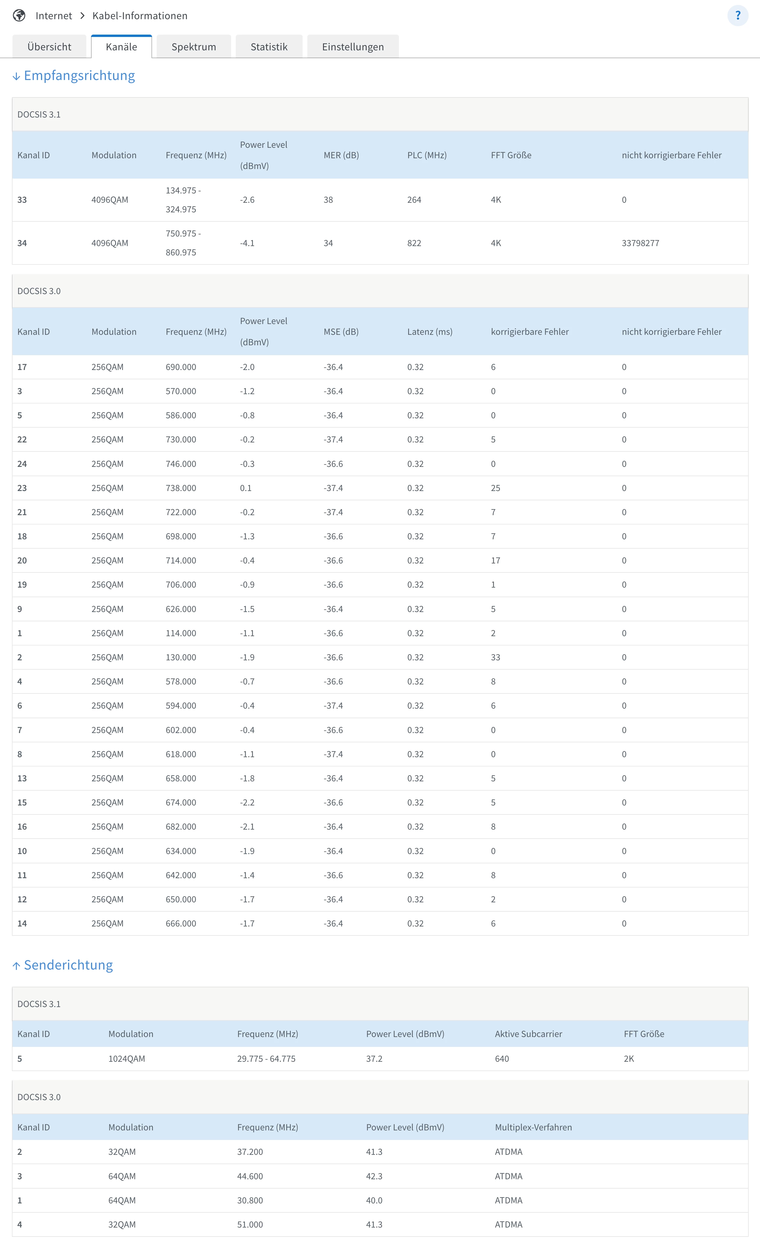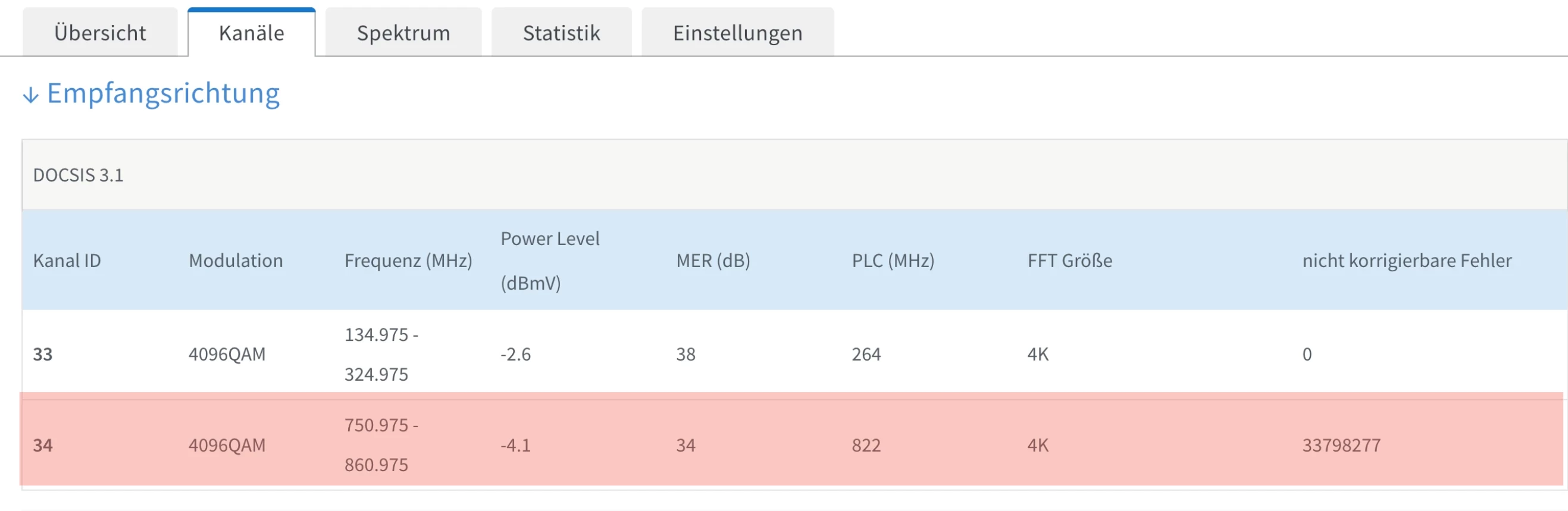Bitte mal bei Störung Übersicht, Kanäle und Statistik.