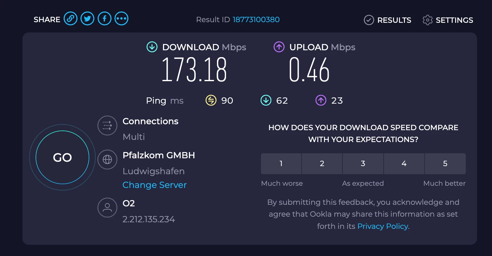 Hier sind Screenshots der Internetgeschwindigkeitsmessung: