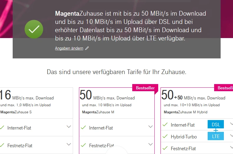 Was genau zeigt denn unsere Bandbreitenabfrage für die Anschrift, an der Du wohnst? Sind dort denn bereits 50MBit/s verfügbar?