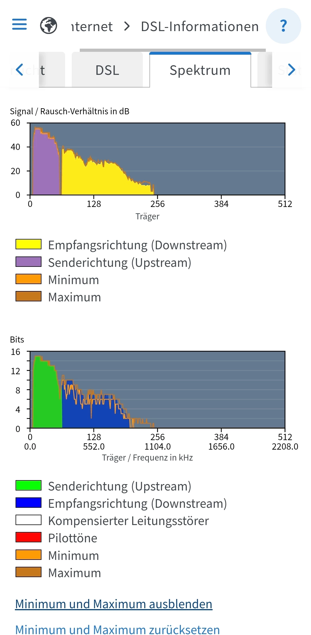 Poste doch nochmal die Spektrumseite (wenn moeglich mit Minimum und Maximum)