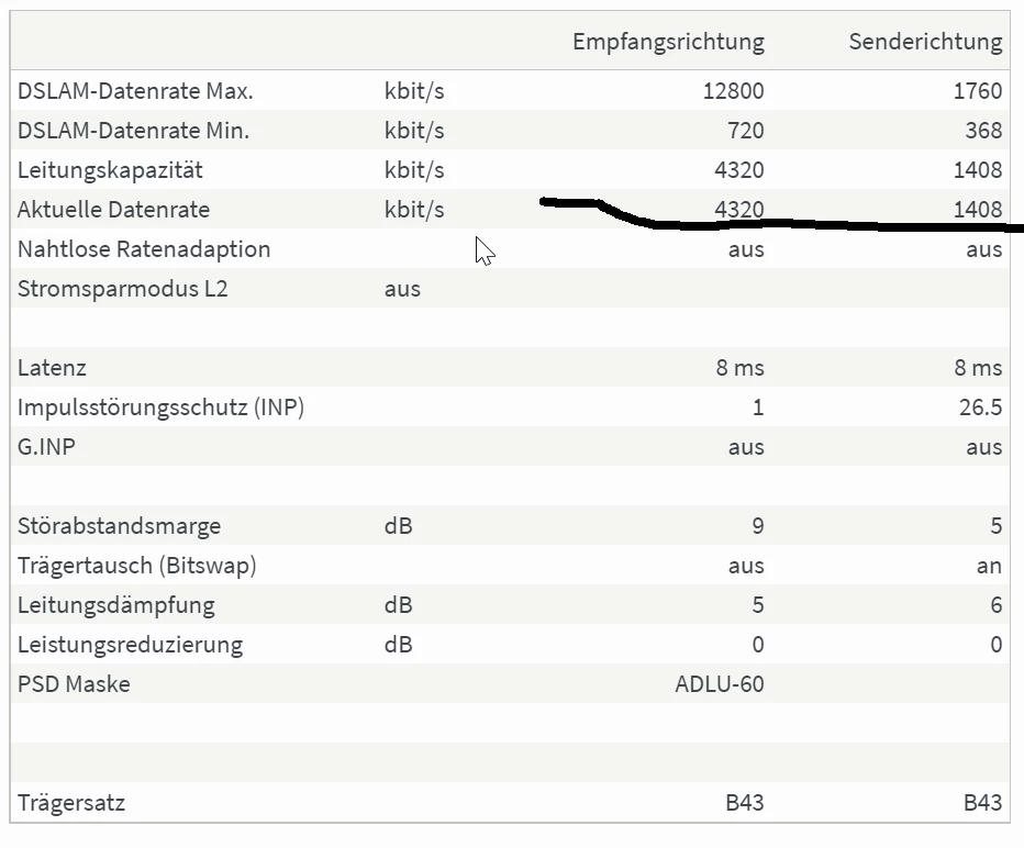 (verbunden↓ 7,7 Mbit/s↑ 1,8 Mbit/s). Aber so lange das jetzt immer funktioniert, wäre es o.k. so.