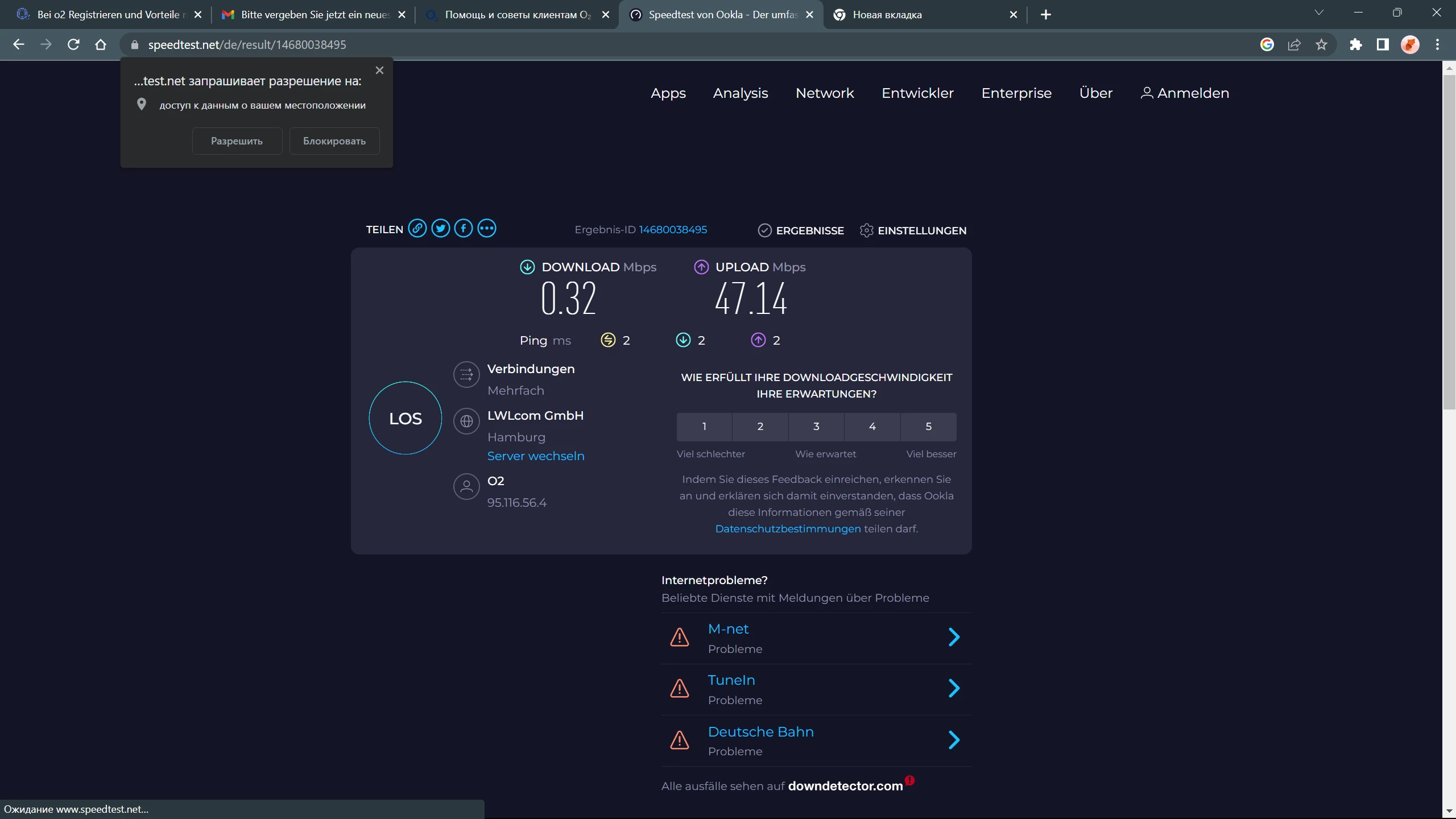 Gestern ist meine Internetgeschwindigkeit von 300 Mbps auf 0,3Mbps gesunken