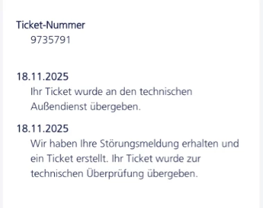 hab ich nur gesagt weils im ticket so steht aber das ist das problem keiner ist zu dem techniker termin gekommen und bis jetzt ist nichts anderes passiert