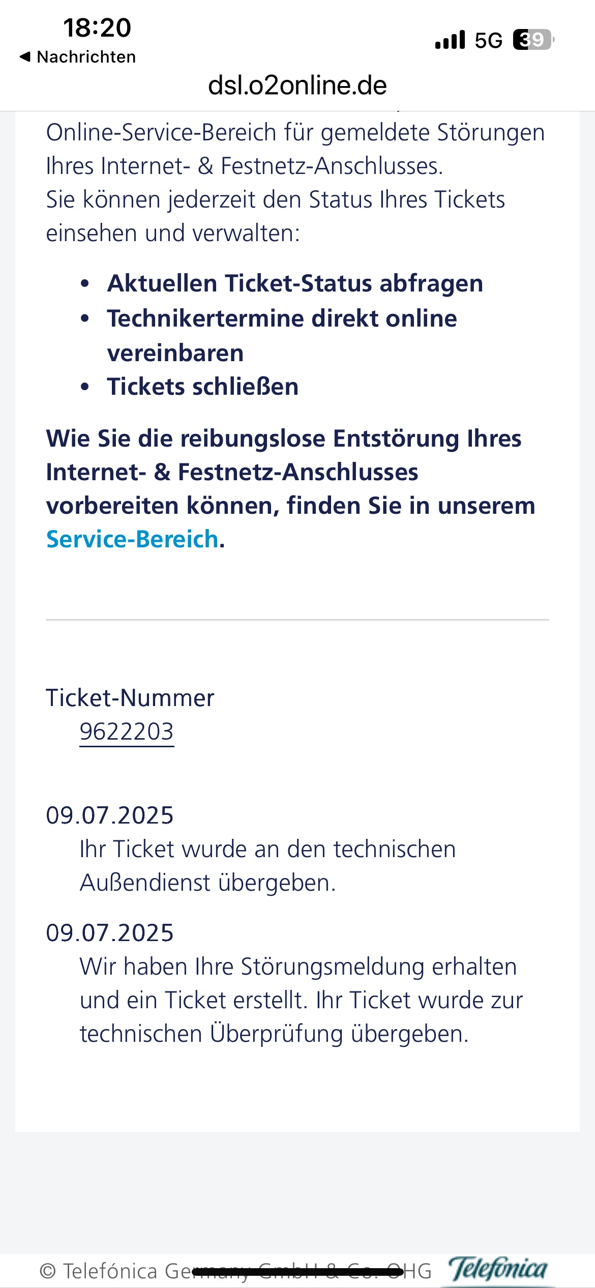 Habe Anfang letzten Woche das Ganze gemeldet.Mobiles Internet habe ich auch noch