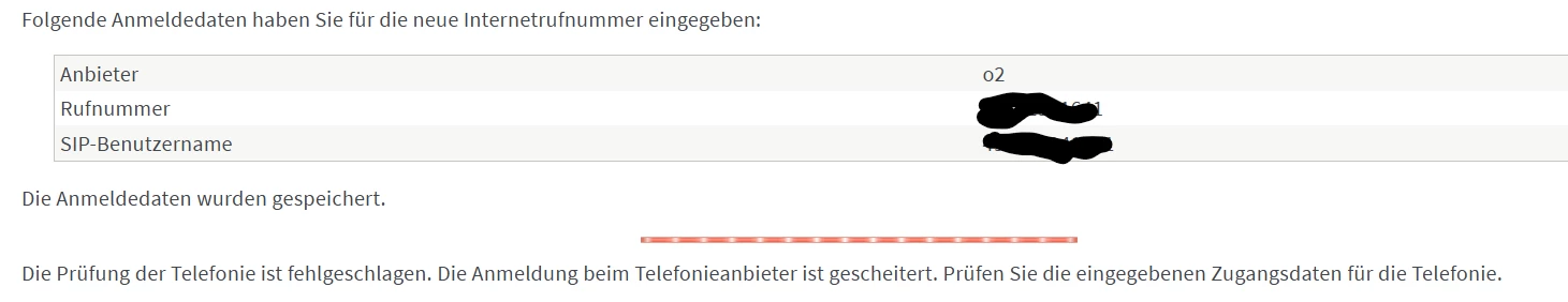 erhältst du denn eine Fehlermeldung, wenn du die Telefonie mit den SIP-Daten in deiner Fritzbox einrichtest? Falls ja, teile sie mir bitte einmal mit.