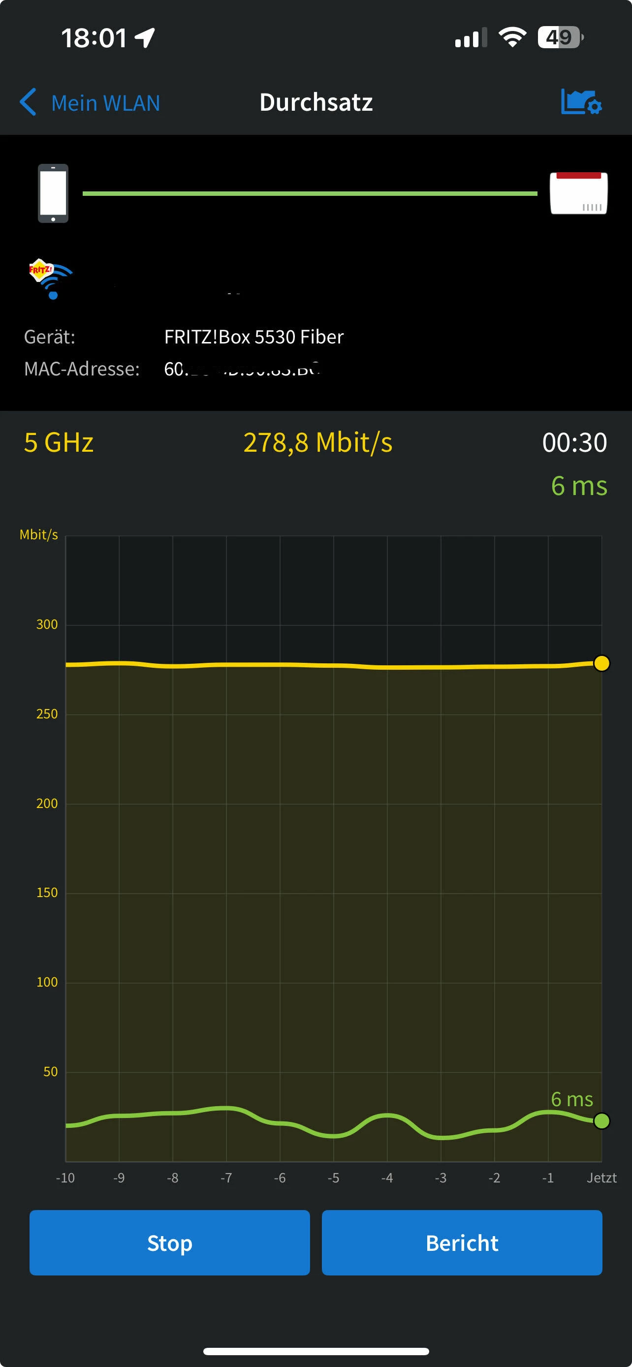Tatsächlich war ich bis eben nicht mit dem Handy im WLan. Habe mich nun verbunden und den Test gemacht.