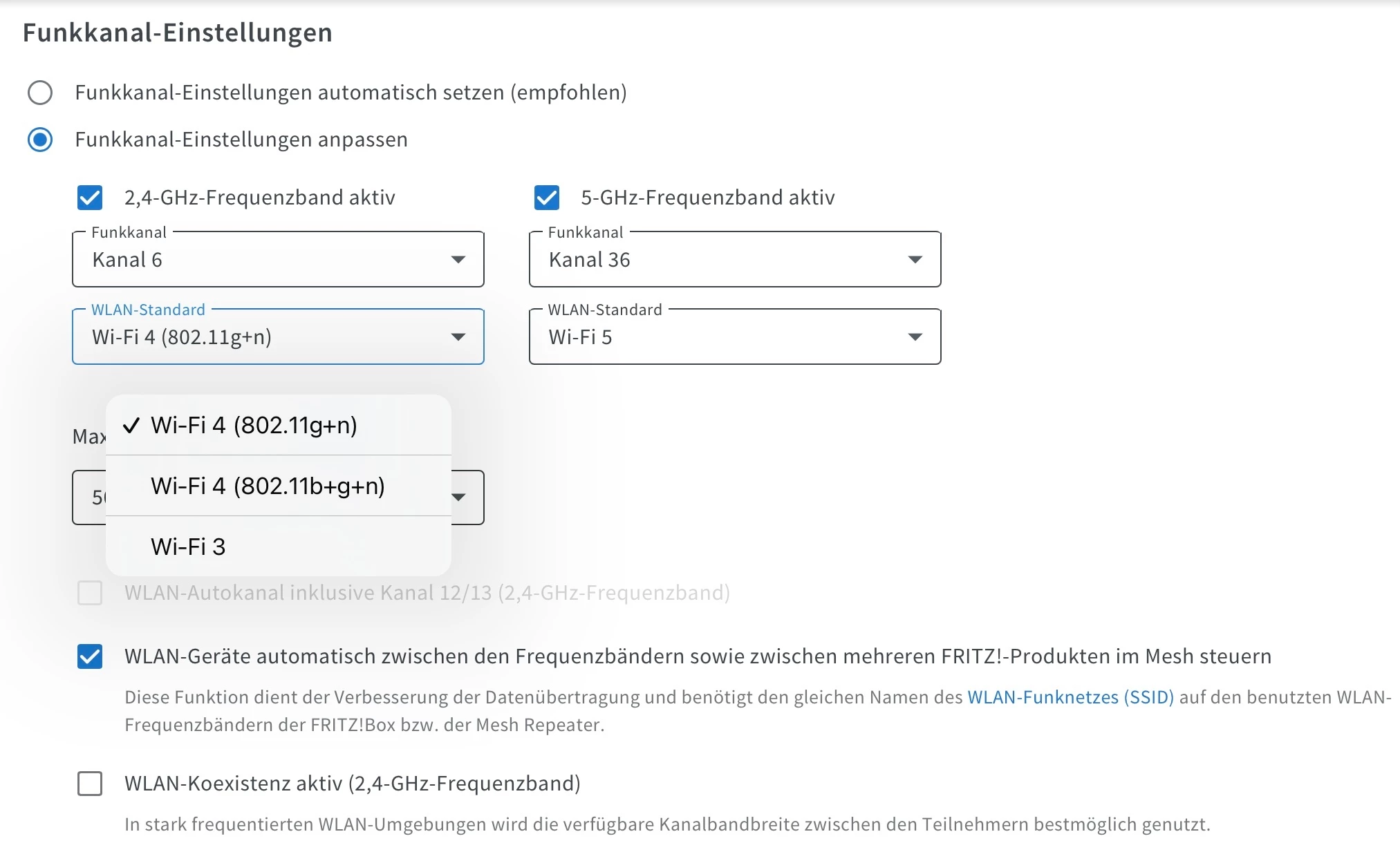 Prüfe auch welche WLAN-Standards aktiv sind.