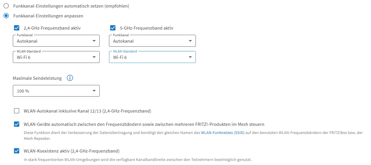 Wohnt man in einer Umgebung, einem Haus mit ein paar mehr Mietern, dann ist die Liste verfügbarer WLAN-Netze meistens recht lang. In einem solchen Fall sollte man WLAN auf 2.4GHz am besten gar nicht erst aktivieren, weil dort dann einfach zu viele Signale reinkommen und die Datenrate ziemlich einbrechen lassen.