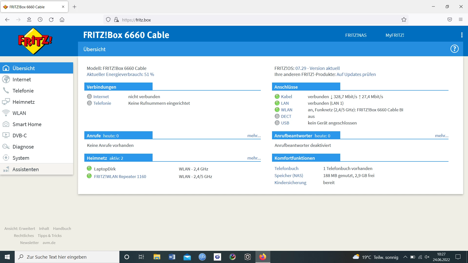 So, seit heute morgen 0 Uhr tut sich wieder was, Fritzbox leuchtete einmal auf und jetzt läuft Sie sporadisch !