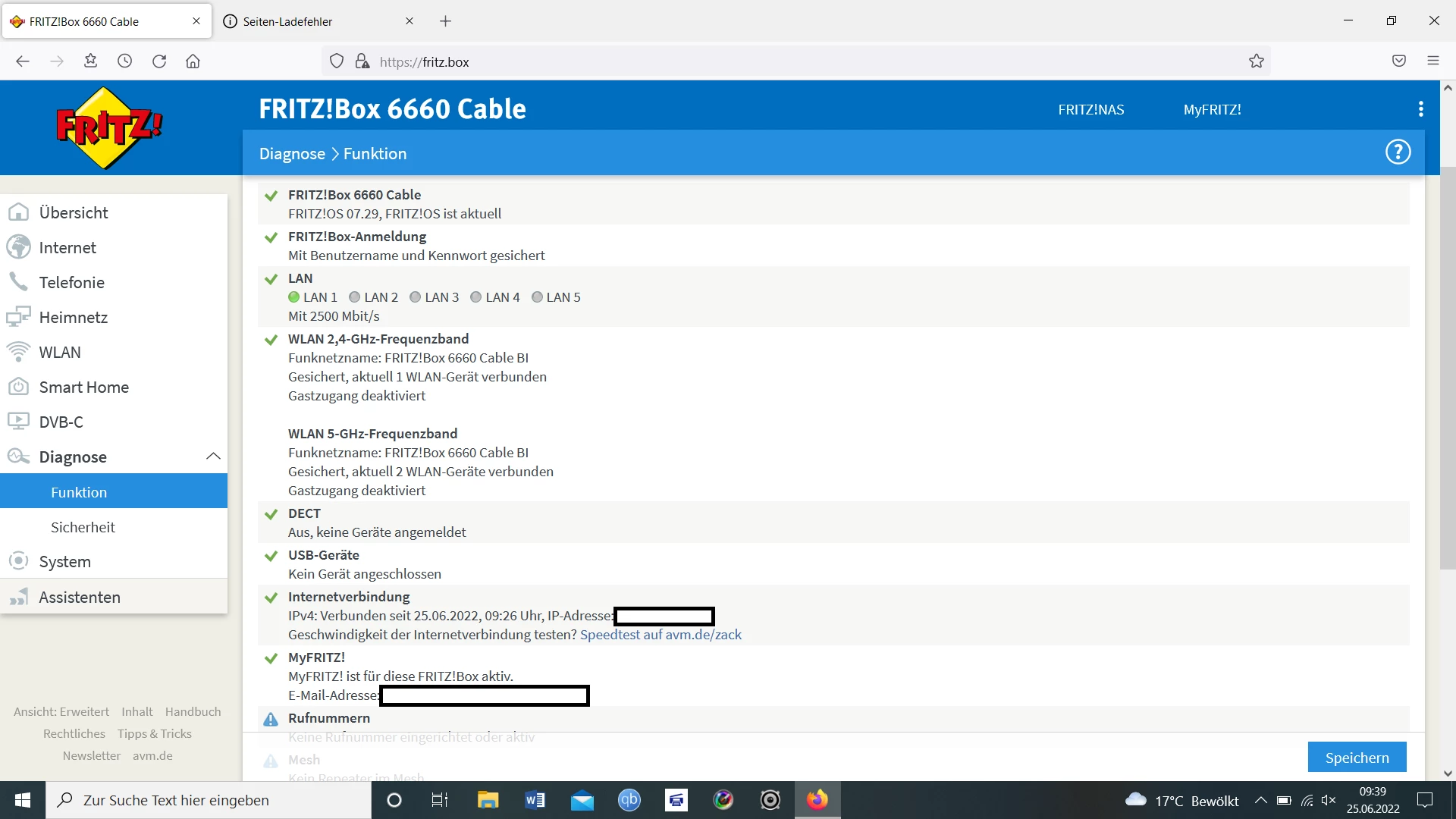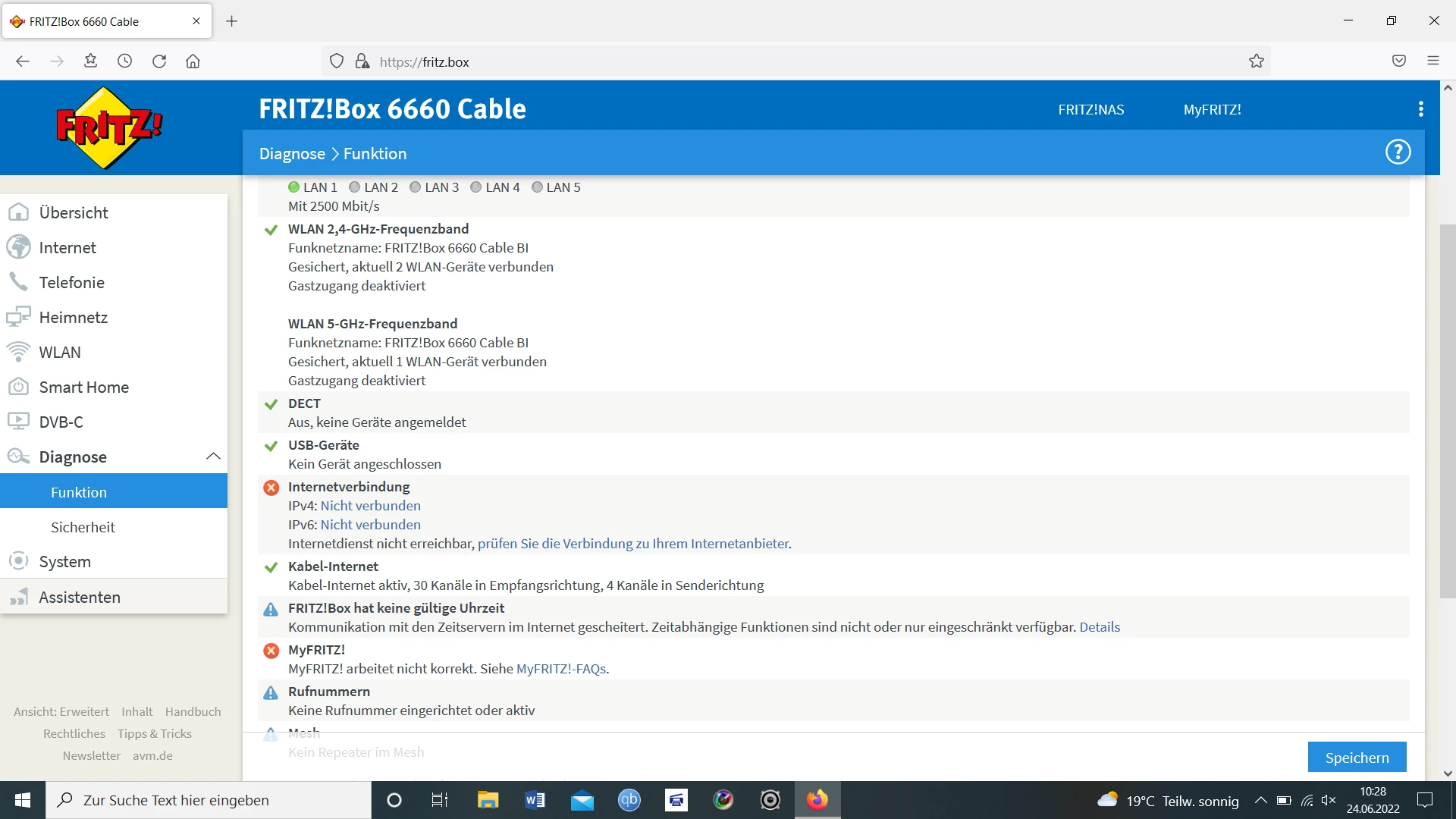 Fritzbox 6660 Cable ist verbunden, aber kein Internet IPV4 und IPV 6 !!!