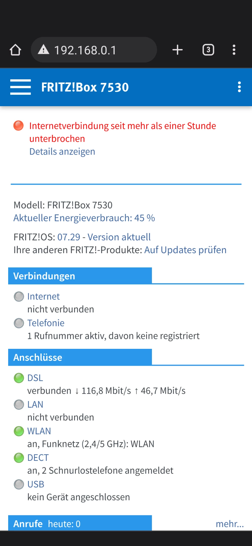 Zur Info: Fritzbox würde mehrfach gestartet, es wurde keine Änderung an der Config durchgeführt, die Box selbst zeigt PPoE- Fehler.