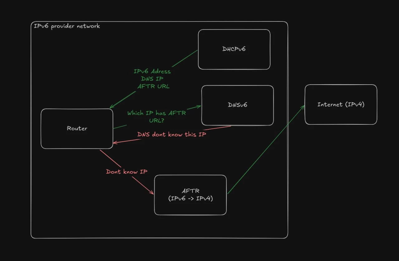 diese DNSv6 kann nicht AFTR adresse auflosen und damit kriege ich keine ipv4 adresse