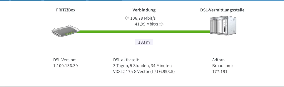 Ich habe mir den Anschluss mal für Dich angeschaut. Wir hatten im Sommer letzten Jahres ein Bandbreitenprofil mit 100MBit(s beim Vorleister bestellt und das wurde auch geschaltet. Und von den Sync-Werten der Fritzbox kommen die Werte auch recht gut an.