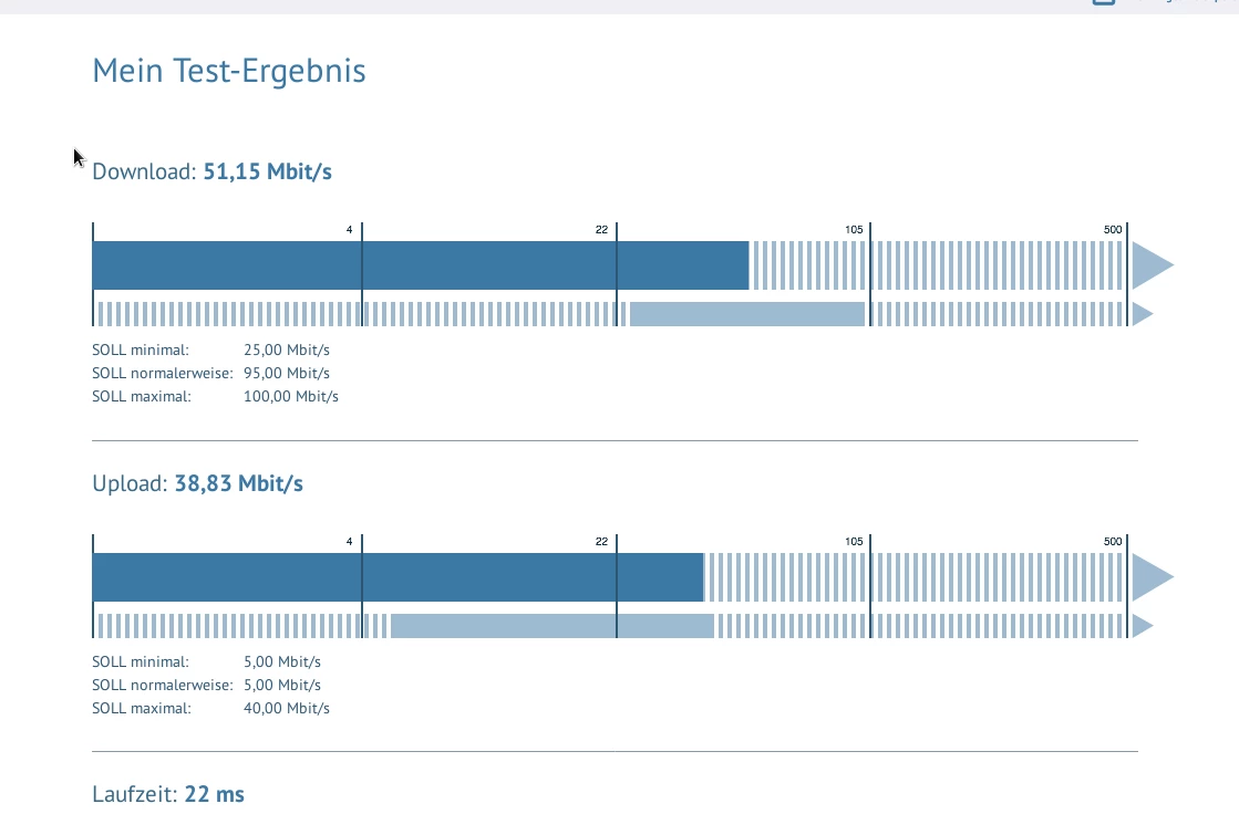 WLAN bringt die gleichen Ergebnisse, wenn ich mit dem Handy direkt vor den Router setze - jetzt aber nur speedtest.net getestet.