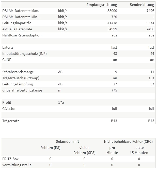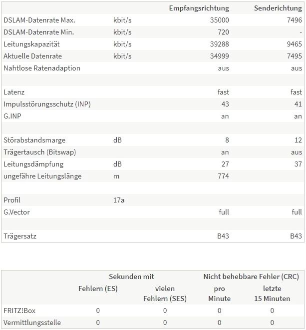 Wenn ich beim Download/Upload auf die jetzt eingestellten Werte 35/7,5 kommen würde, könnte ich bis zum weiteren Ausbau, zufrieden sein. Das ist aber nicht so.
