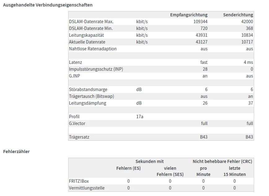 Ich habe leider ebenfalls das Problem einer gedrosselten Leitung seit 3 Woche. Zuvor waren deutlich mehr möglich. Leitungslänge von 414 m. Da waren knapp 100 Mbit möglich.