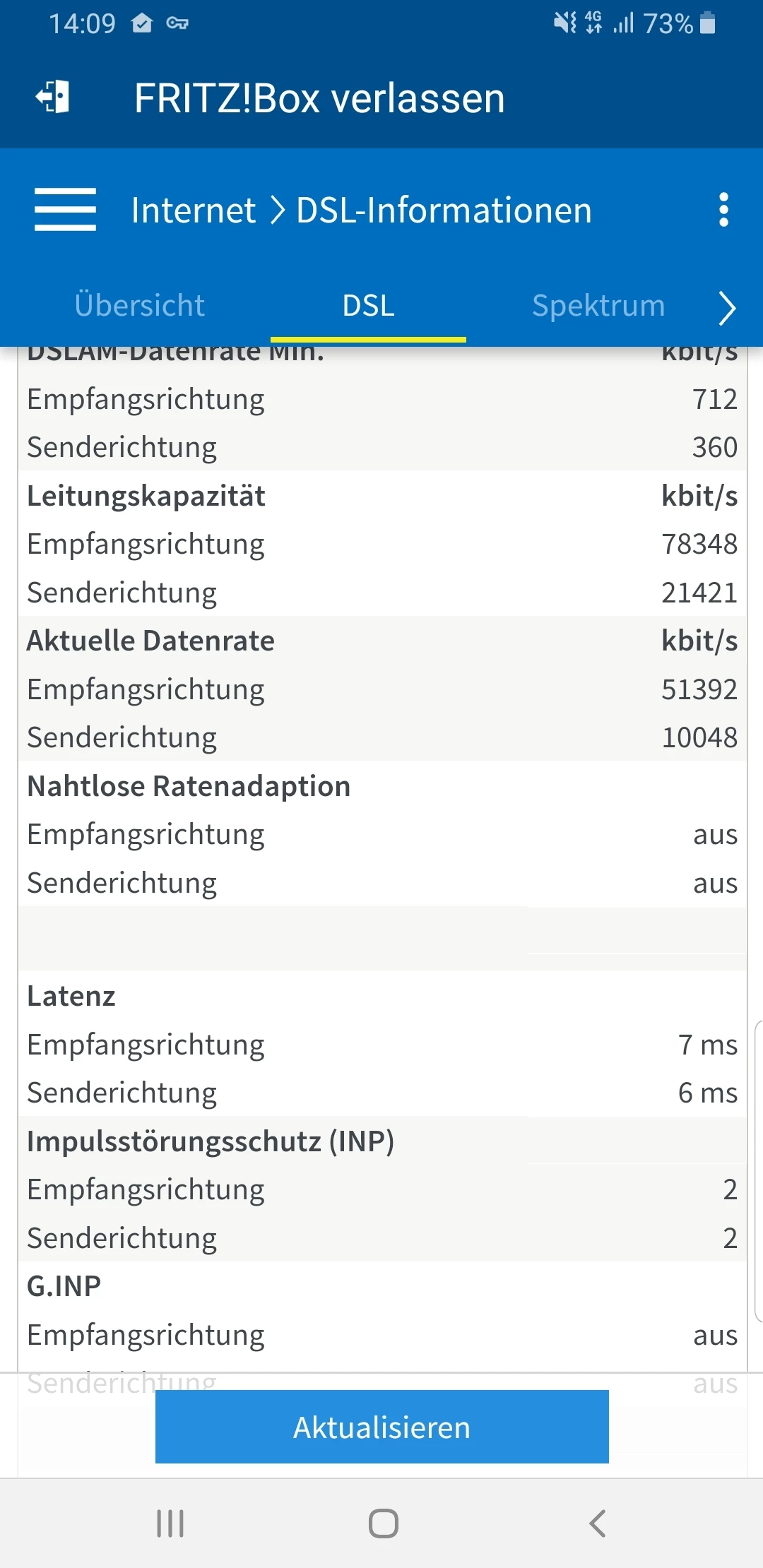 Die Max Datenrate war bis vor vier Wochen auf 26848/5056 fest eingestellt.