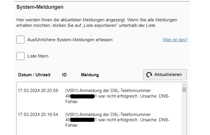 Hab das mal eingetragen aber leider ohne Erfolg. Noch immer die selbe DNS-Fehlermeldung: “Anmeldung der DSL-Telefonnummer 49... war nicht erfolgreich. Ursache: DNS-Fehler”