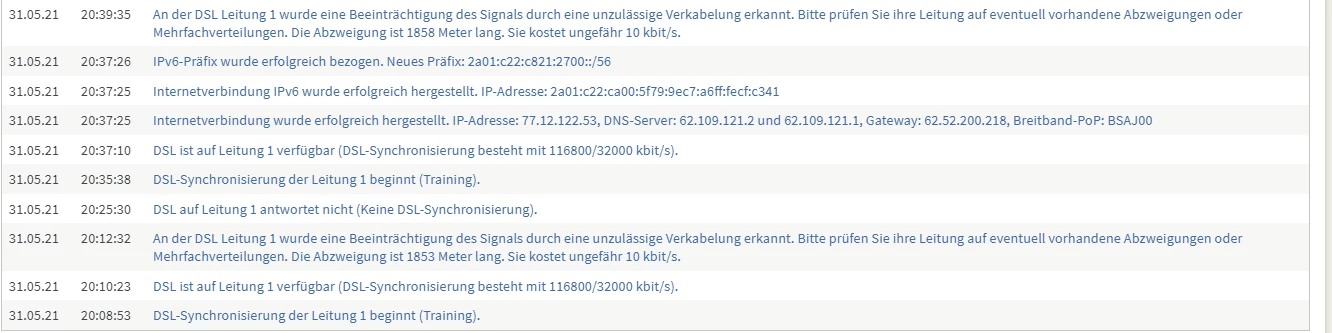 Sporadische DSL Abbrüche, Zeitüberschreitung bei der PPP Aushandlung