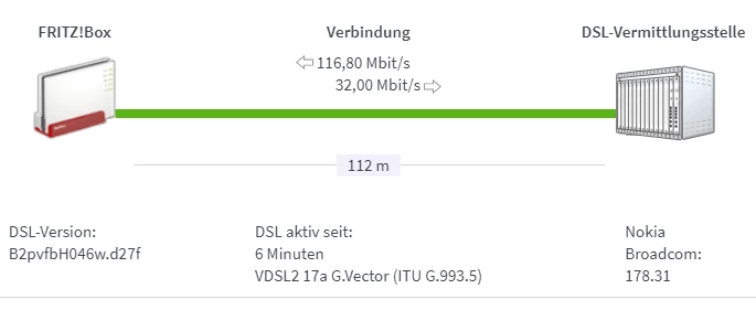 Die Fritzbox zeigt wieder eine Beeinträchtigung durch nicht zulässige Verkabelung bei 1850m