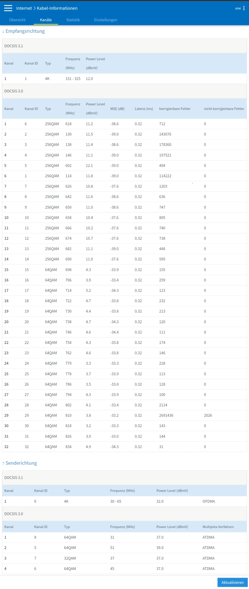 Hier mal das aktuelle Log der Kabel-Kanäle… Die Box läuft aktuell so knapp 2 Tage seit dem letzten Reboot. Das sind aktuell sogar noch harmlose Werte. Ich hatte das auch mit noch mehr und im 2 stelligen Millionenbereich.