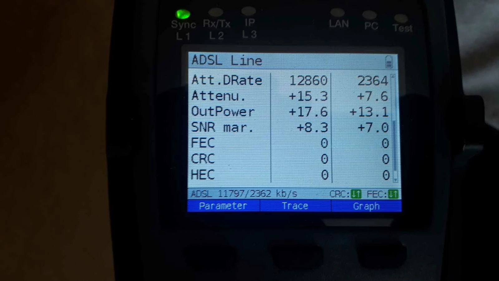 Hier noch ein Bild vom Messgerät des Telekom-Technikers.