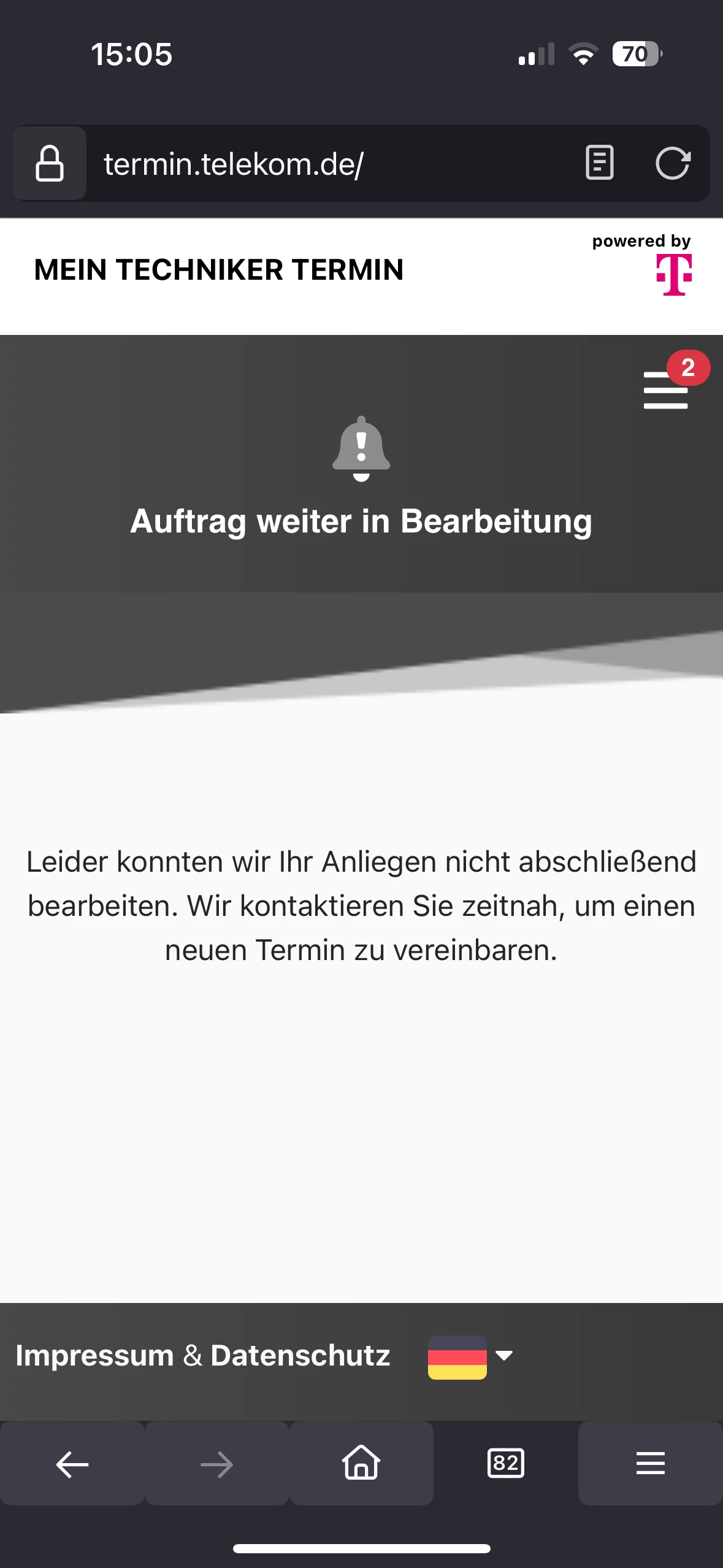 Es freut mich, dass du inzwischen einen neuen Technikertermin hast. Wieso der letzte nicht zustande gekommen ist, kann ich anhand der vorliegenden Daten nicht beurteilen.