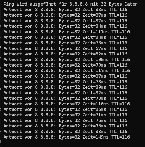 Außerdem hier noch ein kurzes Ping-Protokoll welches Chat-GPT als schlecht gewertet hat, da die Latenzen 1. zu sehr schwanken und 2. deutlich über Durchschnitt liegen.