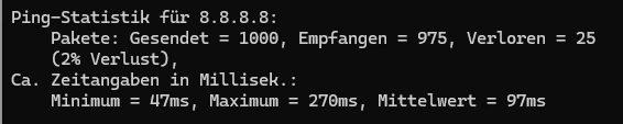Hier auch ein Ping-Protokoll das ich eben mit 1000 Pings hab laufen lassen. 11.11.25 ca. 19Uhr