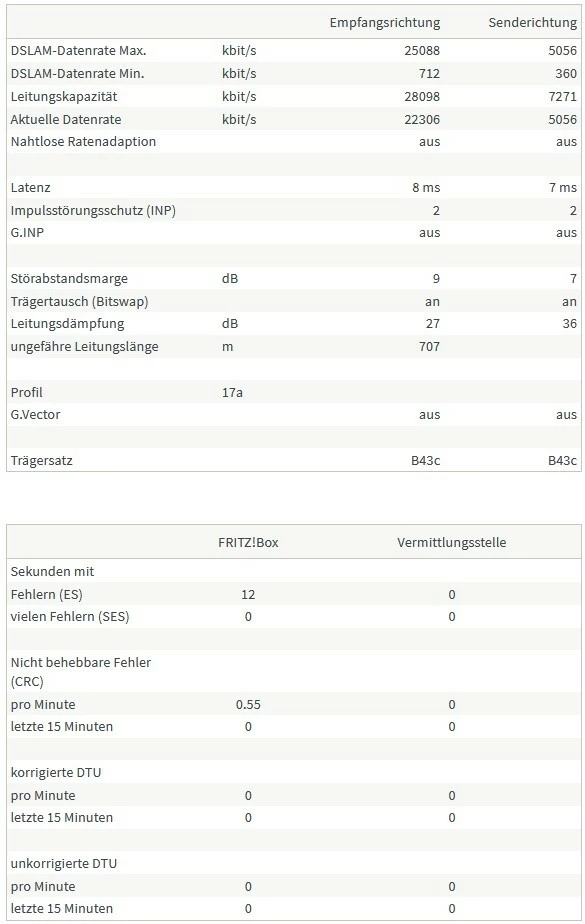 @Joe Doe na klar. Die Fehlerrate ist seit dem letzten Resync (vor ner halbe Stunde) wieder deutlich geringer, aber die aktuelle Datenrate hat sich jetzt auch reduziert (vorher 25088kbit/s).