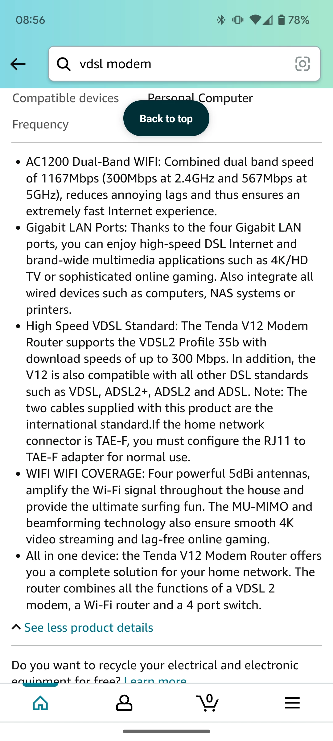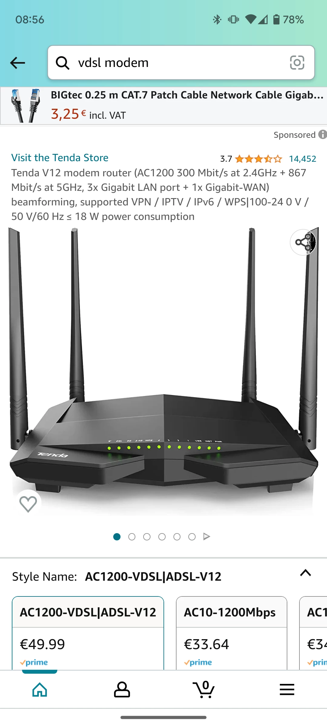 Tenda V12 modem router (AC1200 300 Mbit/s at 2.4GHz + 867 Mbit/s at 5GHz, 3x Gigabit LAN port + 1x Gigabit-WAN) beamforming, supported VPN / IPTV / IPv6 / WPS|100-24 0 V / 50 V/60 Hz ≤ 18 W power consumption https://amzn.eu/d/fOK5NVv