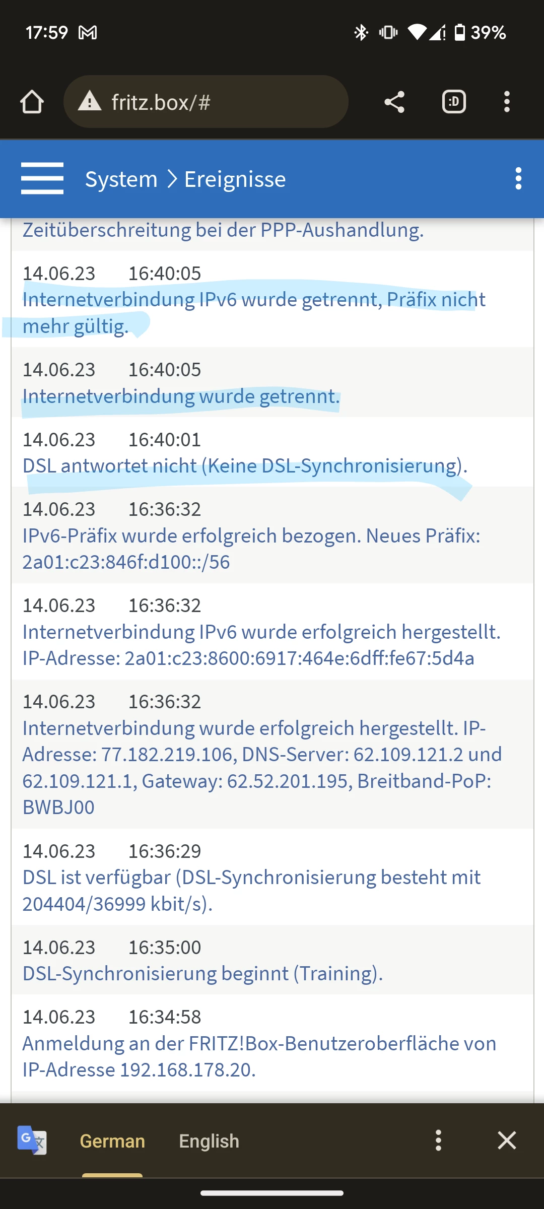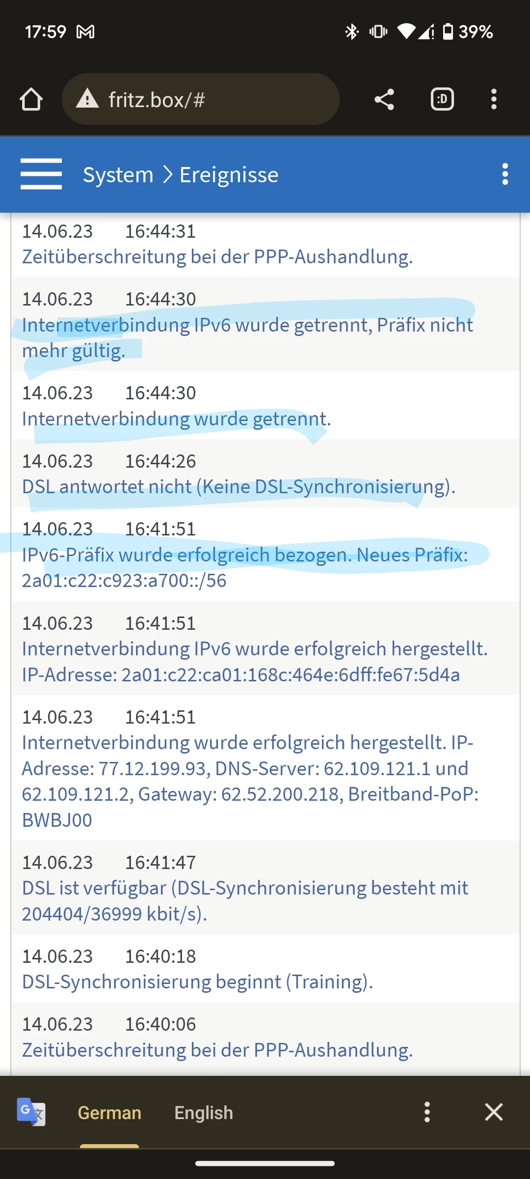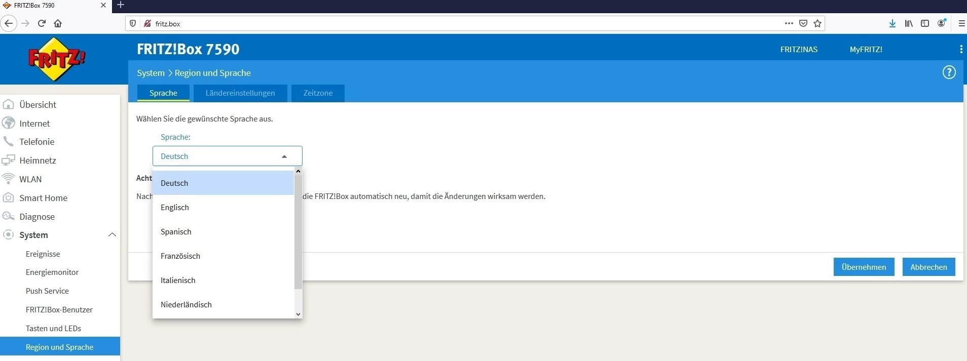 And hint. You can switch your Fritzbox to English if you you want.