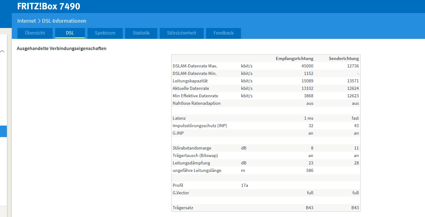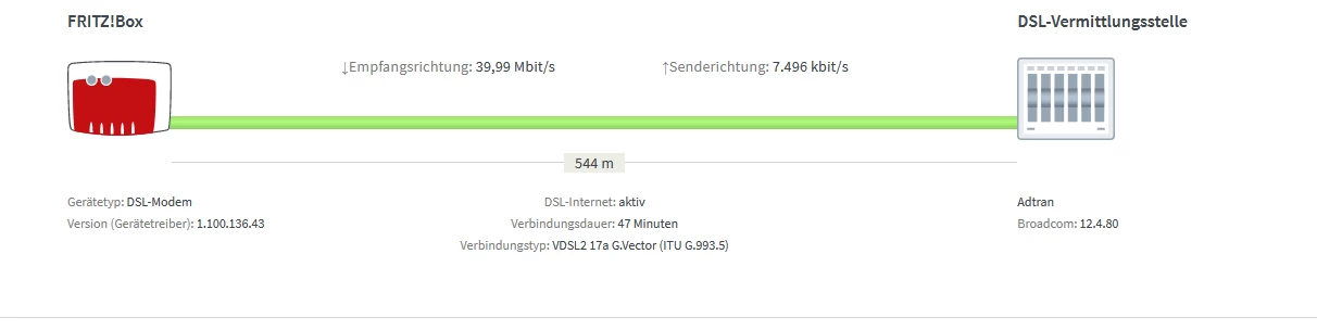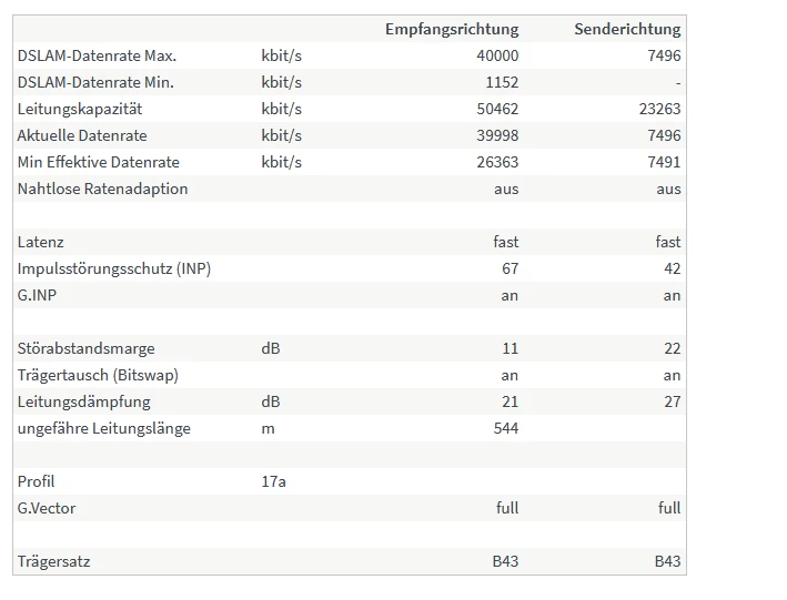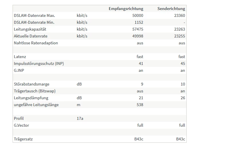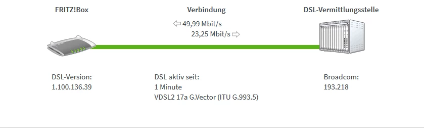 Da sich die Geschwindigkeit, mit der ein Router synchron ist nur bei einer Neusyncronisation ändert, habe ich ein paar Herausforderungen mir die Werte aus dem Screenshot zu erklären.  Das ist auch wirklich ein aktueller Screenshot von dem Router, der angeschlossen ist? Geht es eventuell um einen anderen Anschluss, der unter einem anderen Namen läuft?