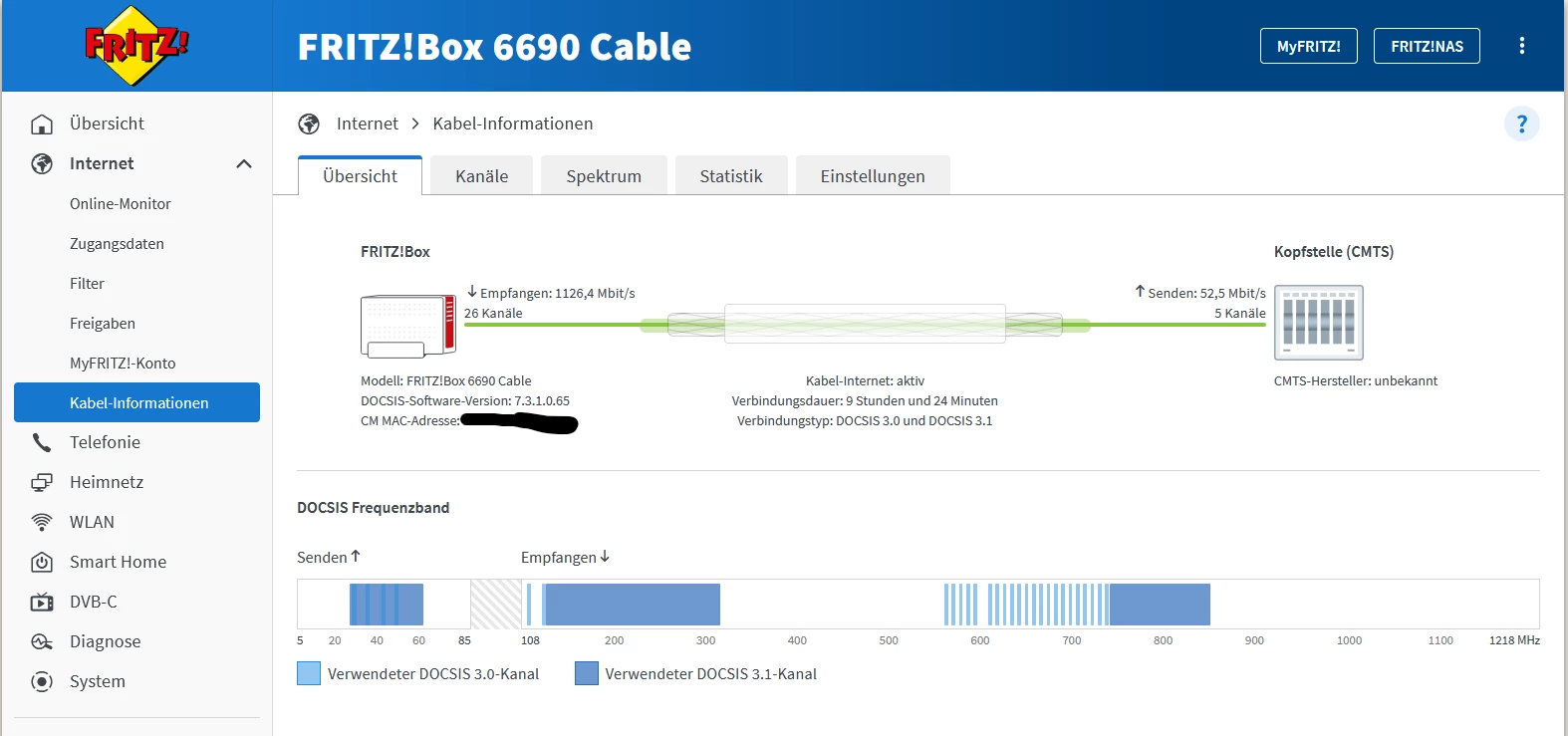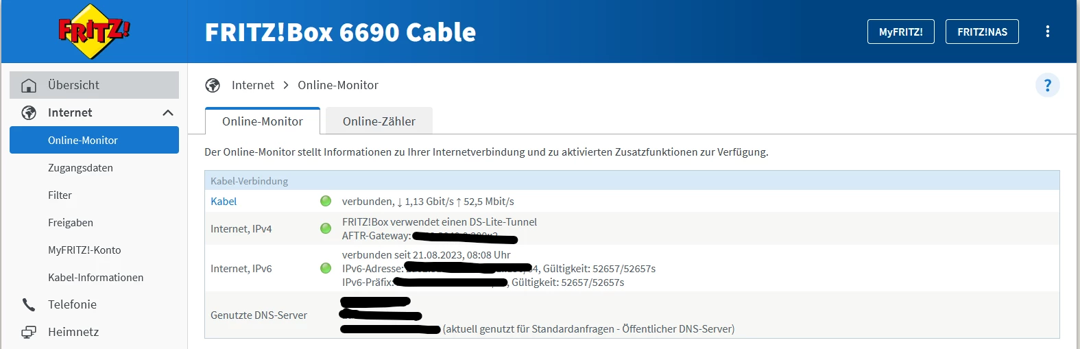 Seit gestern haben wir keinen Internet. Mein Fritzbox 6690 zeigt an, dass die Verbindung zu der Kopfstelle besteht (1126,4Mbit/s download/52,5Mbit/s upload).
