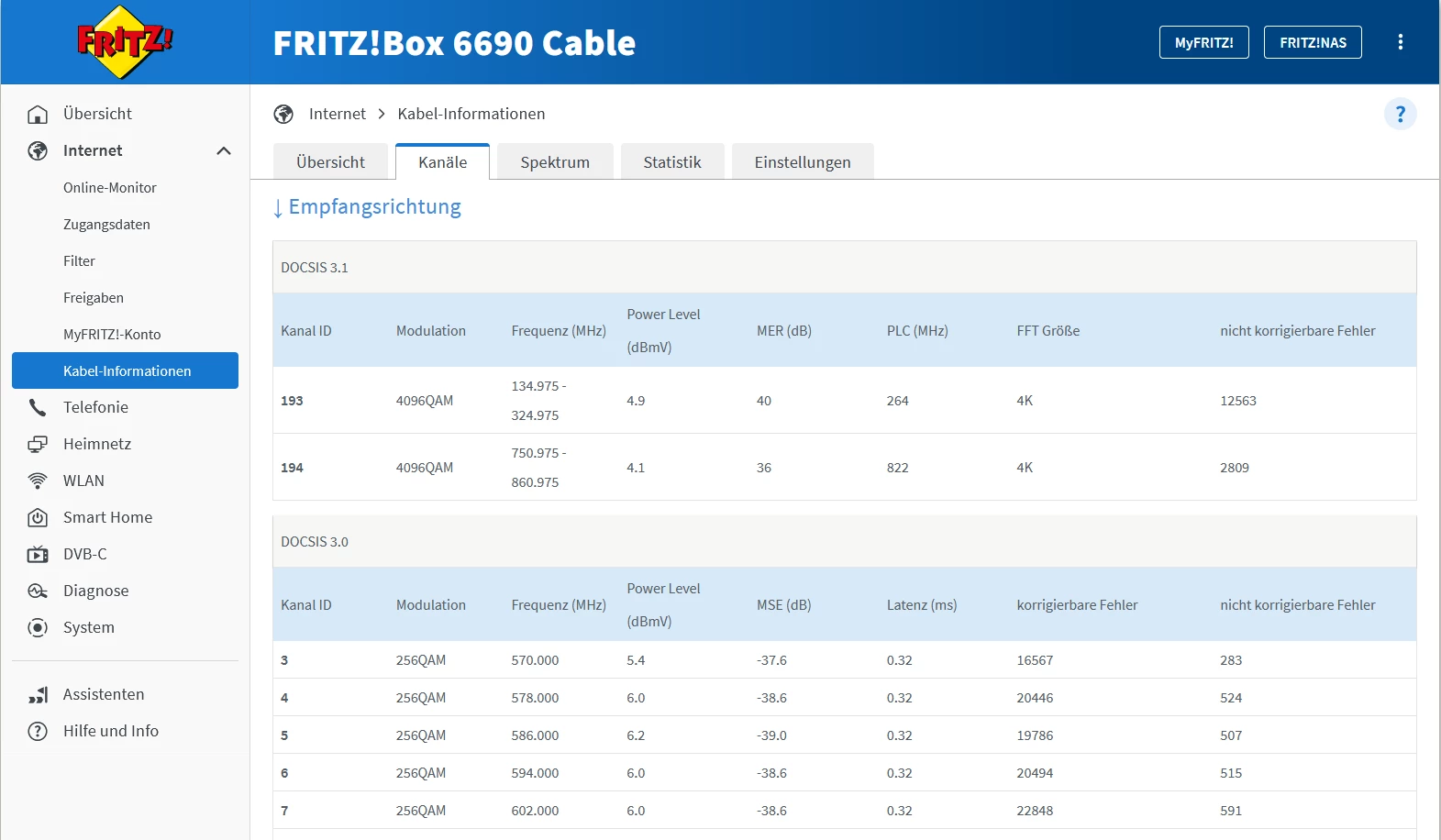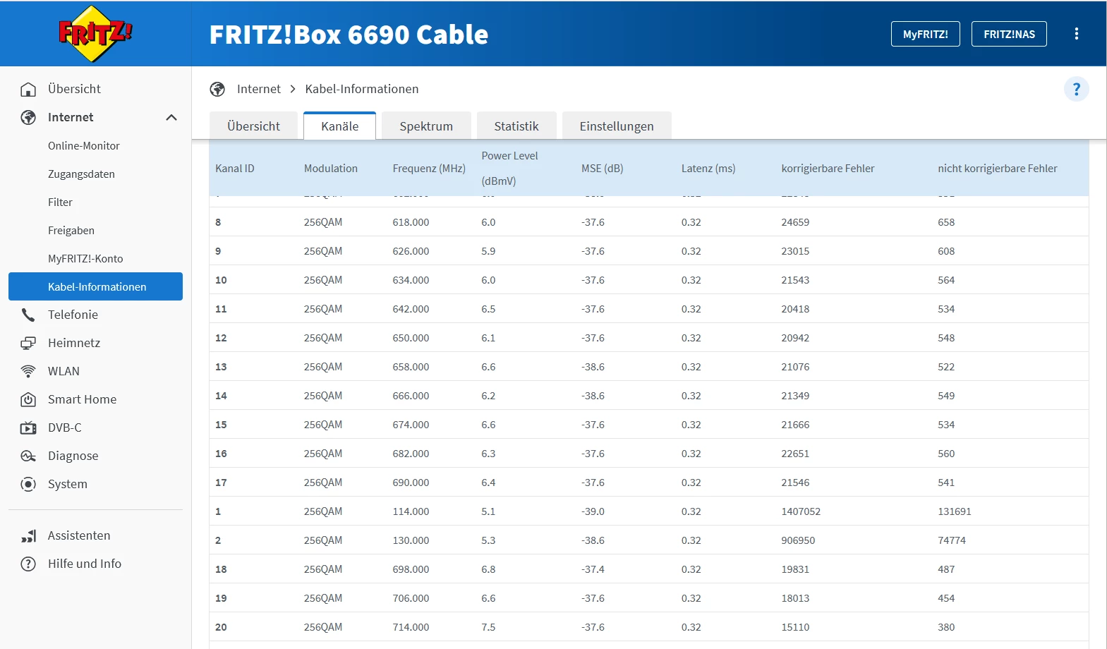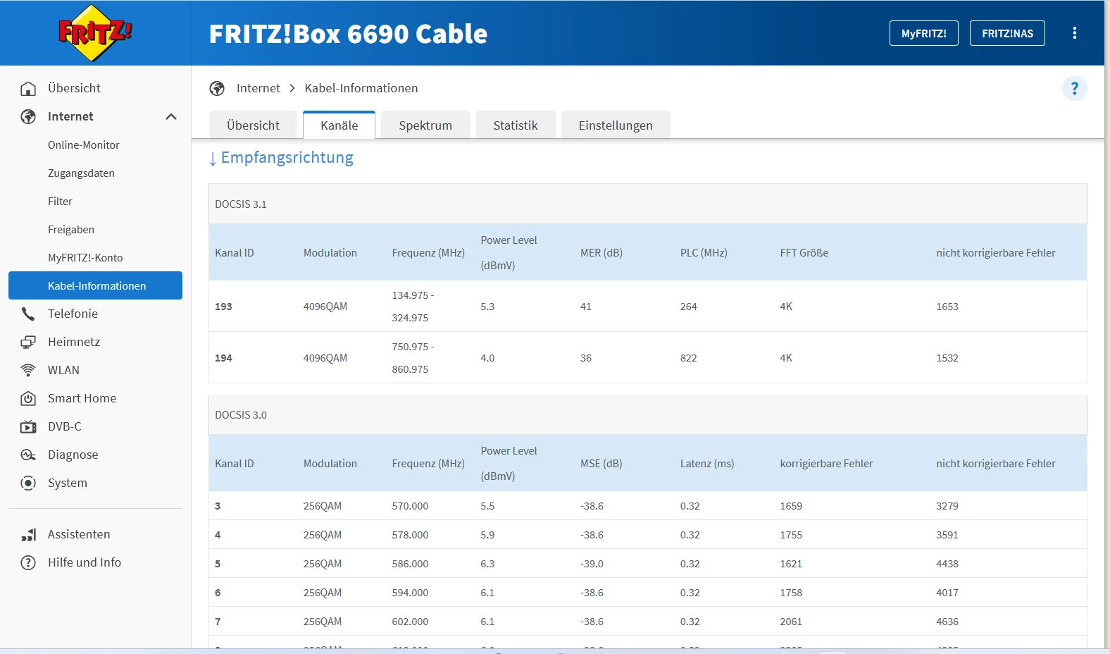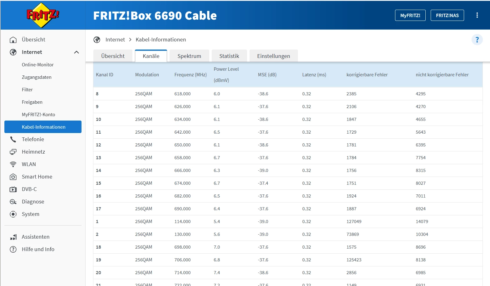 Seit gestern Abend läuft der Anschluss wieder. Hier ist der Screenshot der Kanäle:
