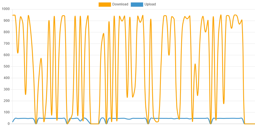Aktuell haben wir 938Mbit/s Download und 48Mbit/s Upload. Ich klopfe schon mal auf Holz, dass es so bleibt! =)