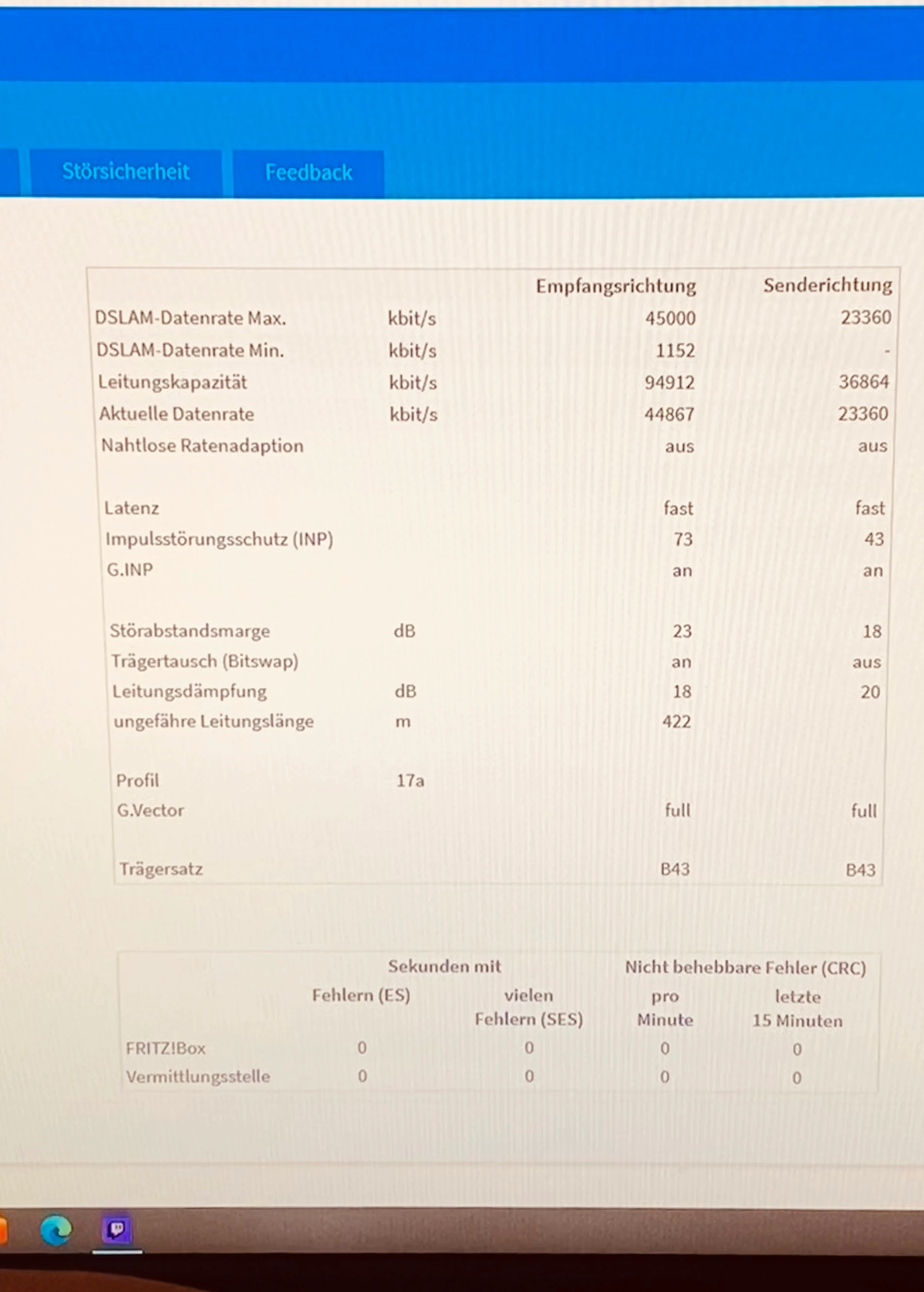 @Onkelzmuc hmm. Mir gehen langsam die Optionen aus. Ist die 7490 Fritzbox eine o2 Mietbox oder deine eigene? Wie lange war die Box Online, bevor Du das zweite Foto gemacht hast? (Fehlerzähler ist auf Null)