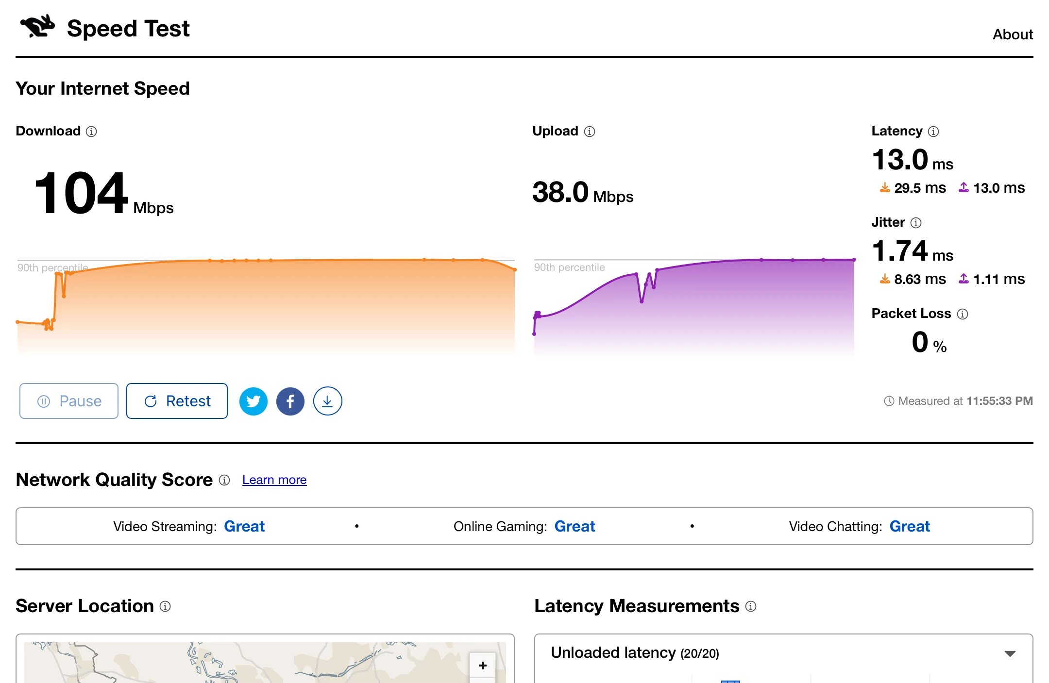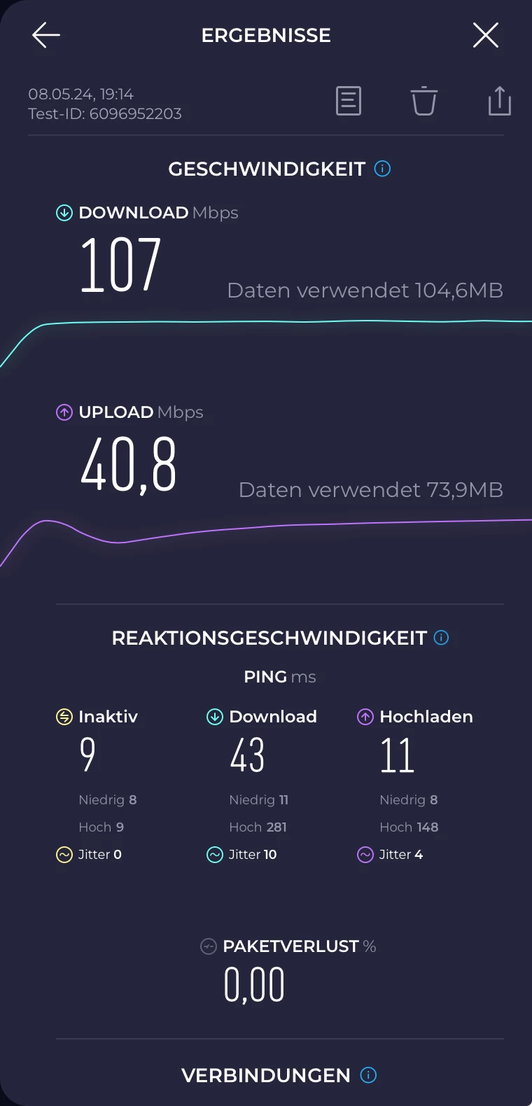 Danke für deine ausführliche Antwort. Den Losstest habe ich auch über diese Seite laufen lassen, allerdings mit völlig anderen Einstellungen und dem Server in den Staaten. 🙈
