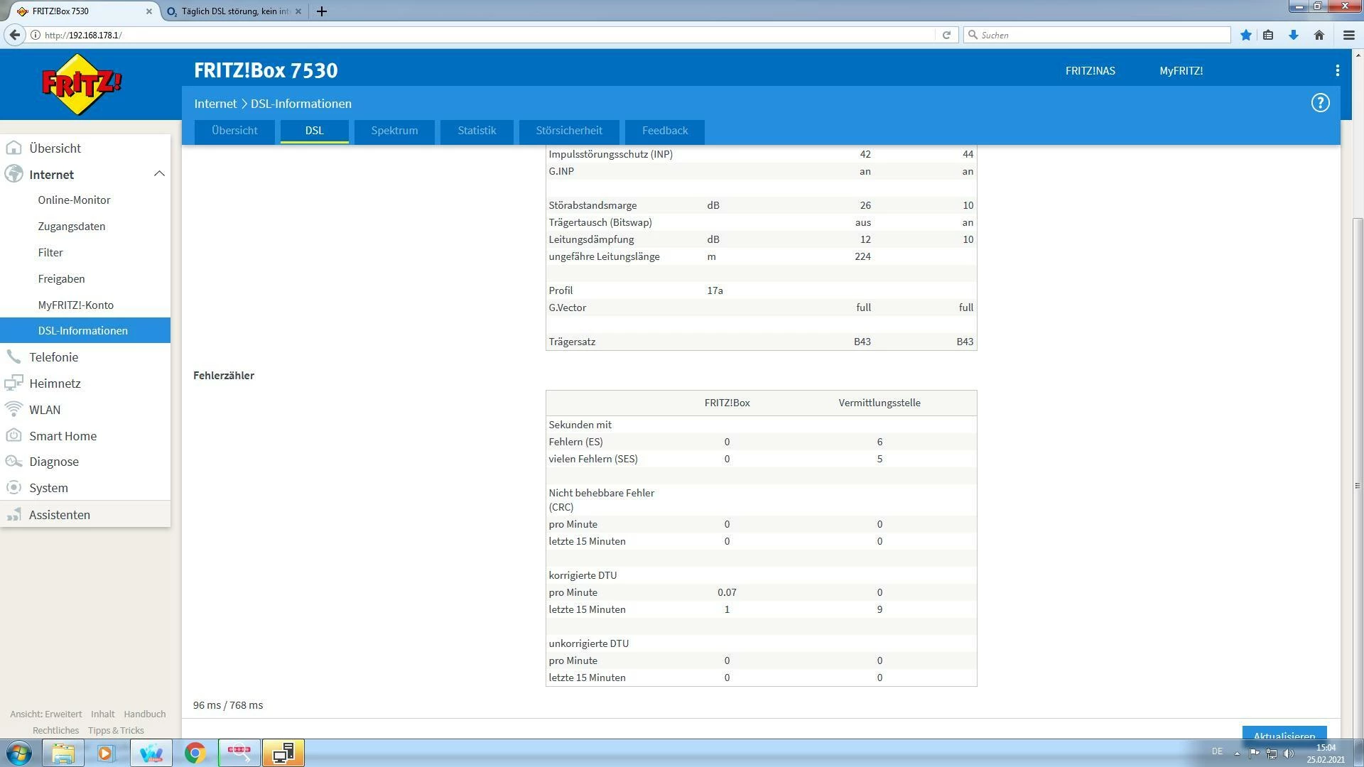 @AliTurk Kann es sein, dass auf Fritzbox 7530 noch keine Firmware 7.21 ist? Ich vermisse die DTU Fehler im Reiter DSL. Damit kann man mehr über Fehler auf der Leitung sagen.