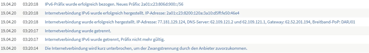Die Zwangstrennung betrifft übrigens ausschließlich die PPPoE-Verbindung, die DSL-Synchronisation bleibt dabei bestehen.
