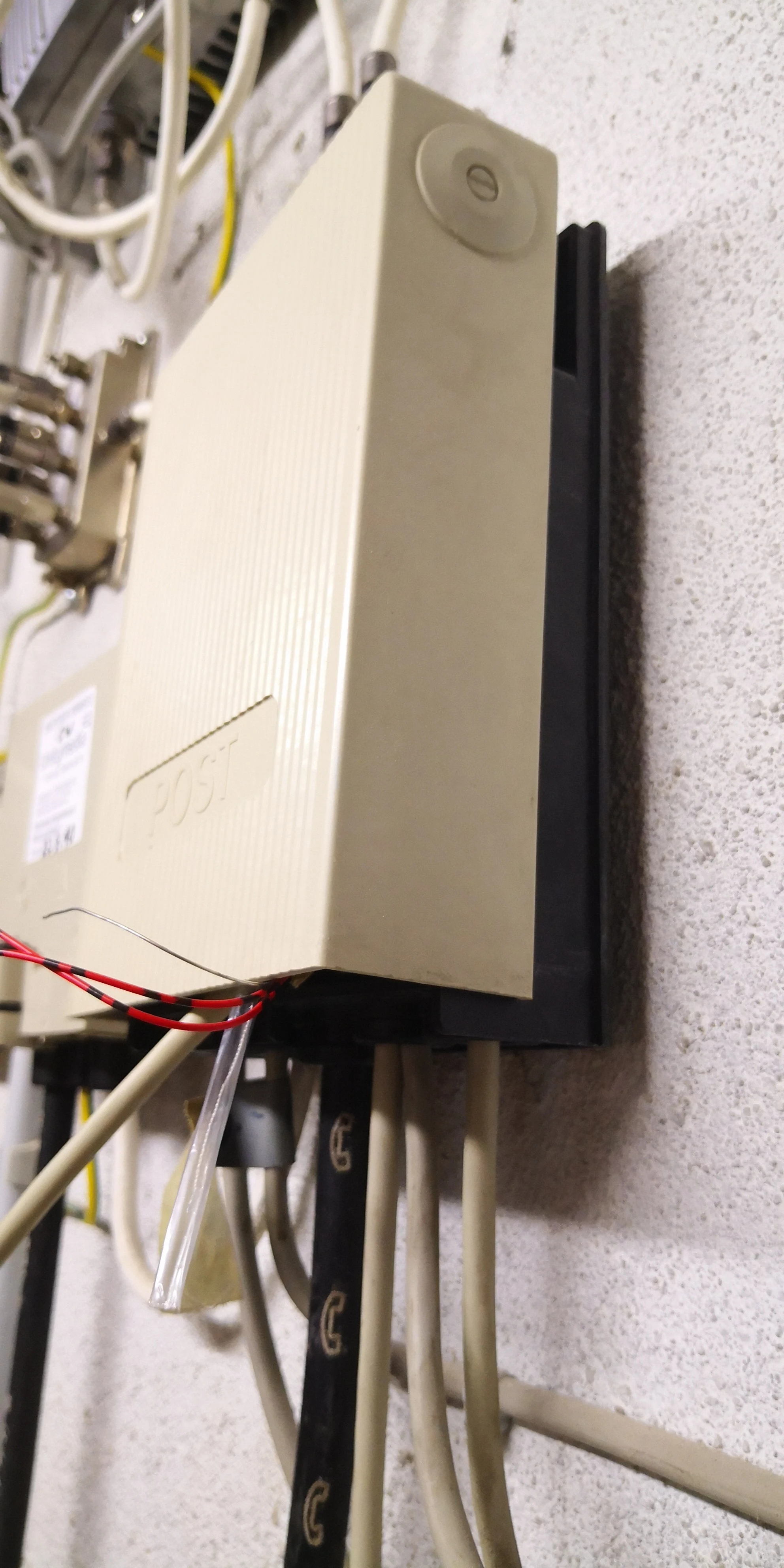 Ohne viel Aufwand und Ärger würde ich das Kabel unten einführen, wieder auf die Klemmen legen und den Kasten schließen. Geht eindeutig schneller als so. Schon lustig wie Techniker eine Installation verunstalten können.