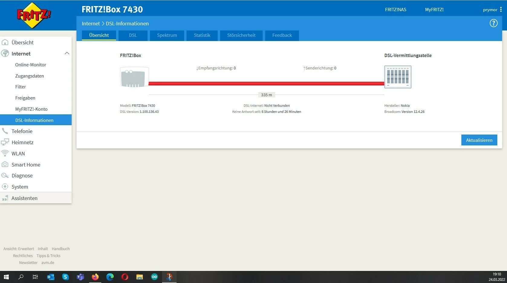 Die Freude über die durch die Umstellungen gewonnene Geschwindigkeit war leider nur kurz. Seit dem 24.03. ca 12:40 bin ich jetzt offline. Mitten bei der Arbeit im Homeoffice war dann Feierabend. Im Log der Fritzbox ist die Leitung physikalisch tot. Zur Sicherheit die noch nagelneue Homebox 2 mit neuem Kabel Installiert. Leitung tot. Habe heute ein Ticket über die Hotline eröffnet. Das ist jetzt mal voll Mist .