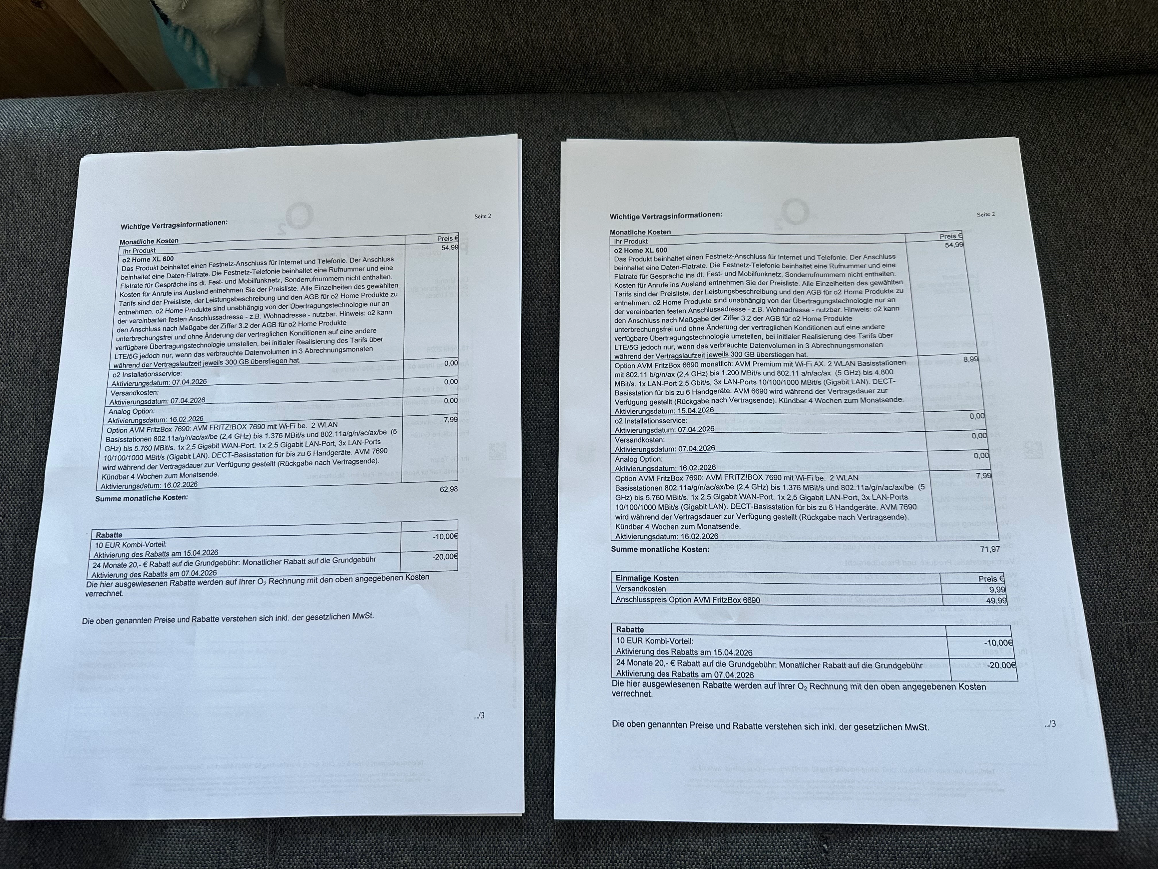 Letztendlich nach ca. 3 Wochen telefonieren haben wir endlich einen kompetenten Mitarbeiter am Telefon gehabt, der hat für uns einen Technologiewechsel beauftragt, auch wenn es dort erst Komplikationen gab (Im Vertrag stand ein falscher Router, falscher Preis, etc.) Haben wir doch den Glauben an o2 wieder gefunden und hofften das am 07.04.2026 endlich alles läuft.
