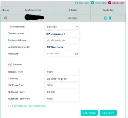 Wenn dann das Vorwahl Feld leer gelassen werden soll... was nicht zu lässig ist und im Telefonnummern Feld der Sip login Name eingetragen werden soll ergibt... es für den normalen Verbraucher keinen Sinn.