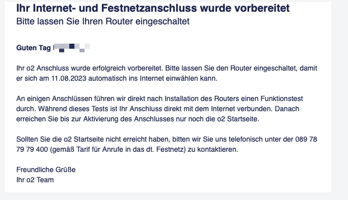 per SMS kam: “Ihr Internet Anschluss von o2 wurde vorbereitet….”