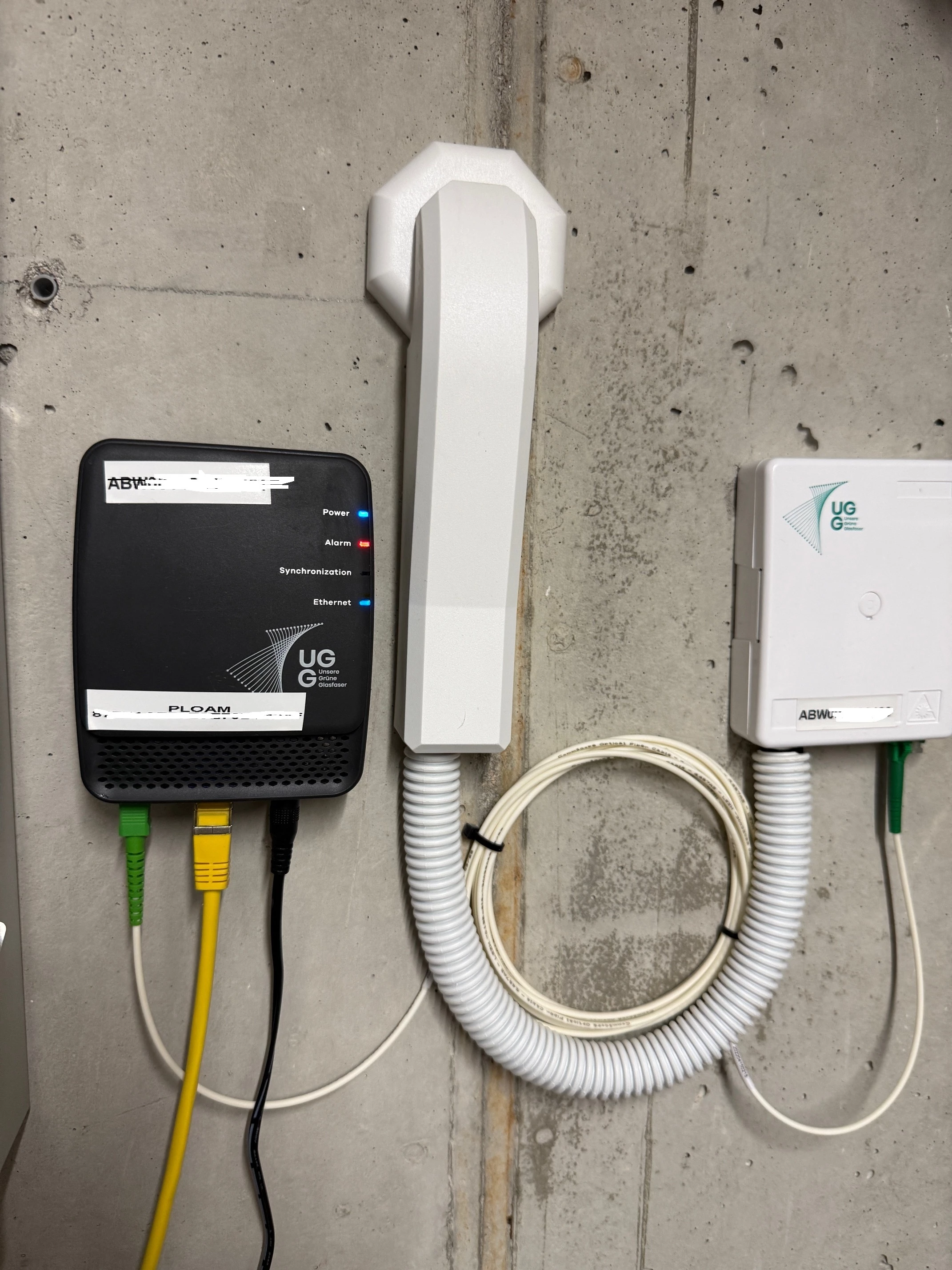 Heute war nach vielen weiteren Telefonaten mit dem besten Service, ein Mitarbeiter der Glasfaser Firma UGG vor Ort.