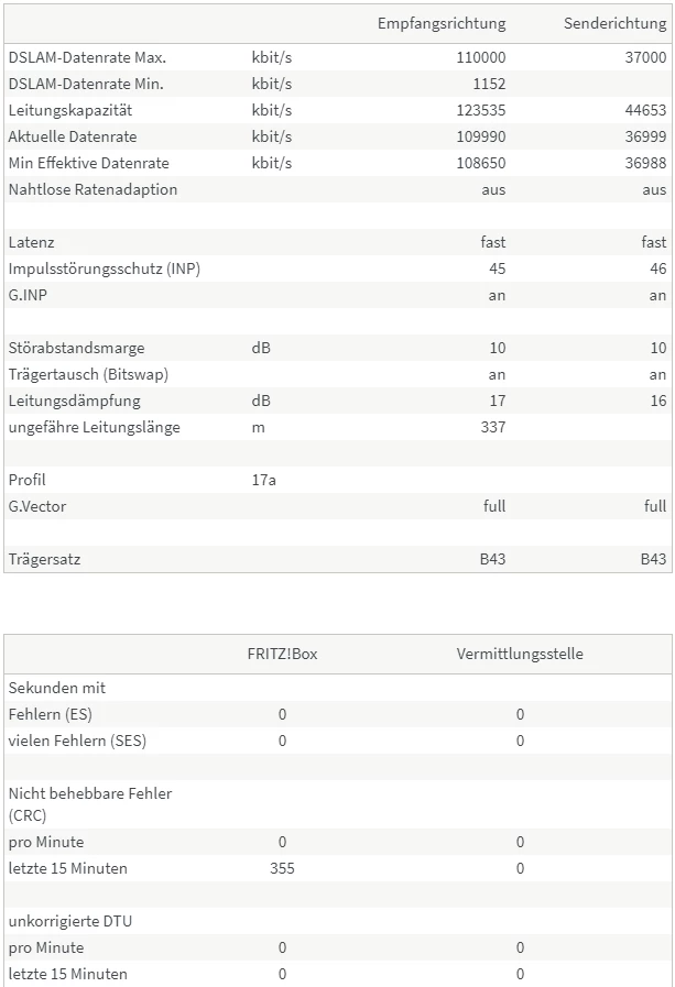 VVDSL ist (je nach TAL und Hausanschluss) leider sehr Störanfällig und man kann nur hoffen das wir in naher Zukunft flächendeckend FTTH bekommen.
